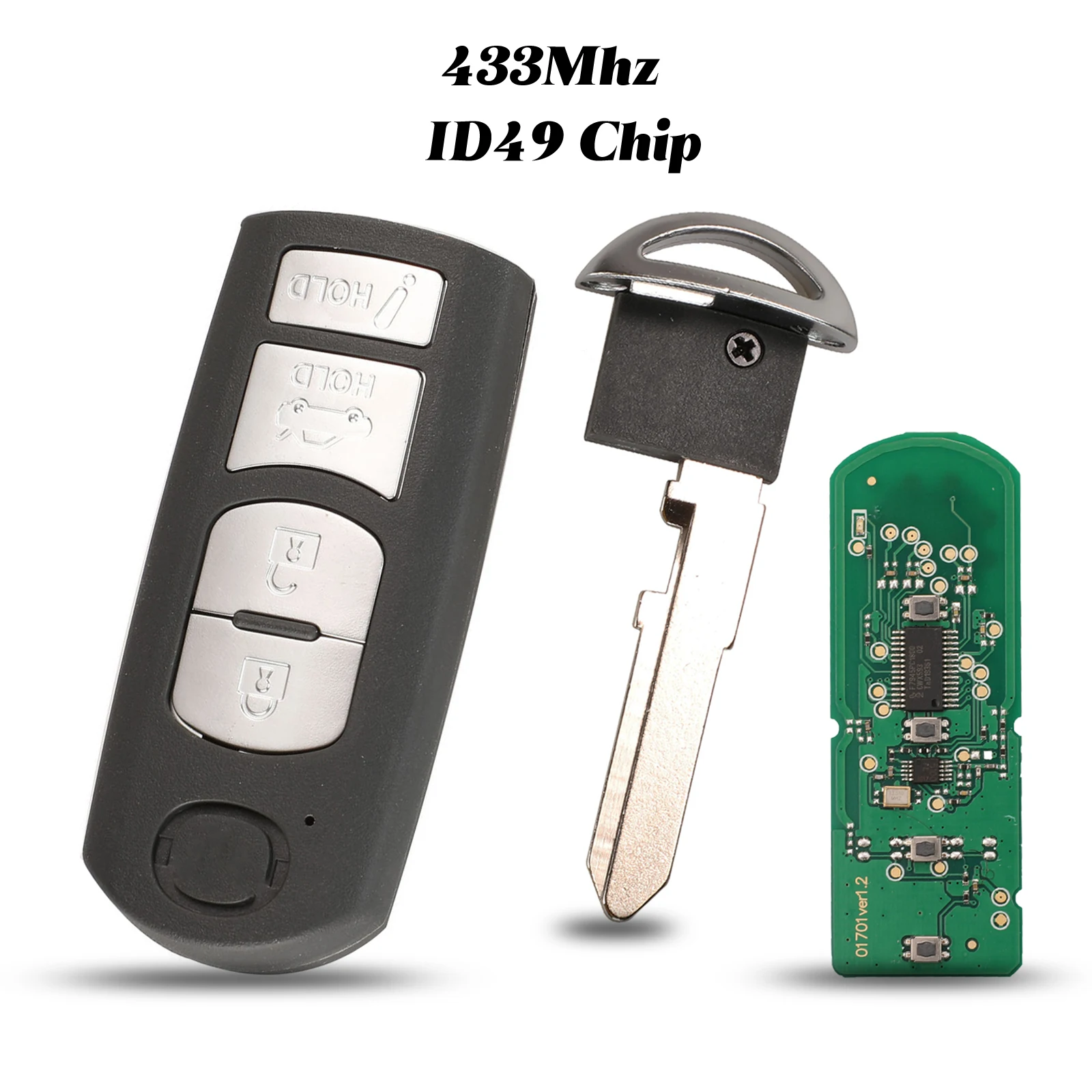 Пульт дистанционного управления jingyuqin для автомобилей Mazda 6, 3, MX-5, CX-3, CX-5, CX-7, 433 МГц, чип ID49, брелок SKE13E-01