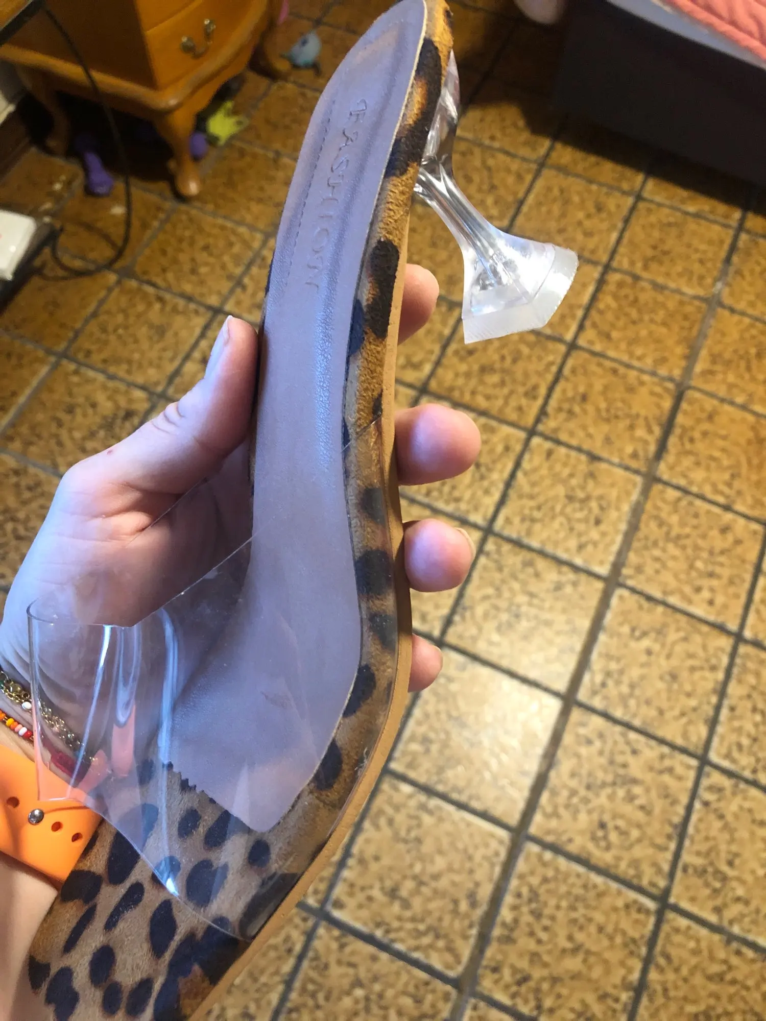Сандалии женские прозрачные на тонком каблуке, с леопардовым принтом