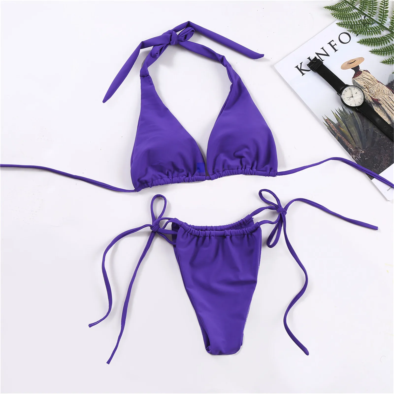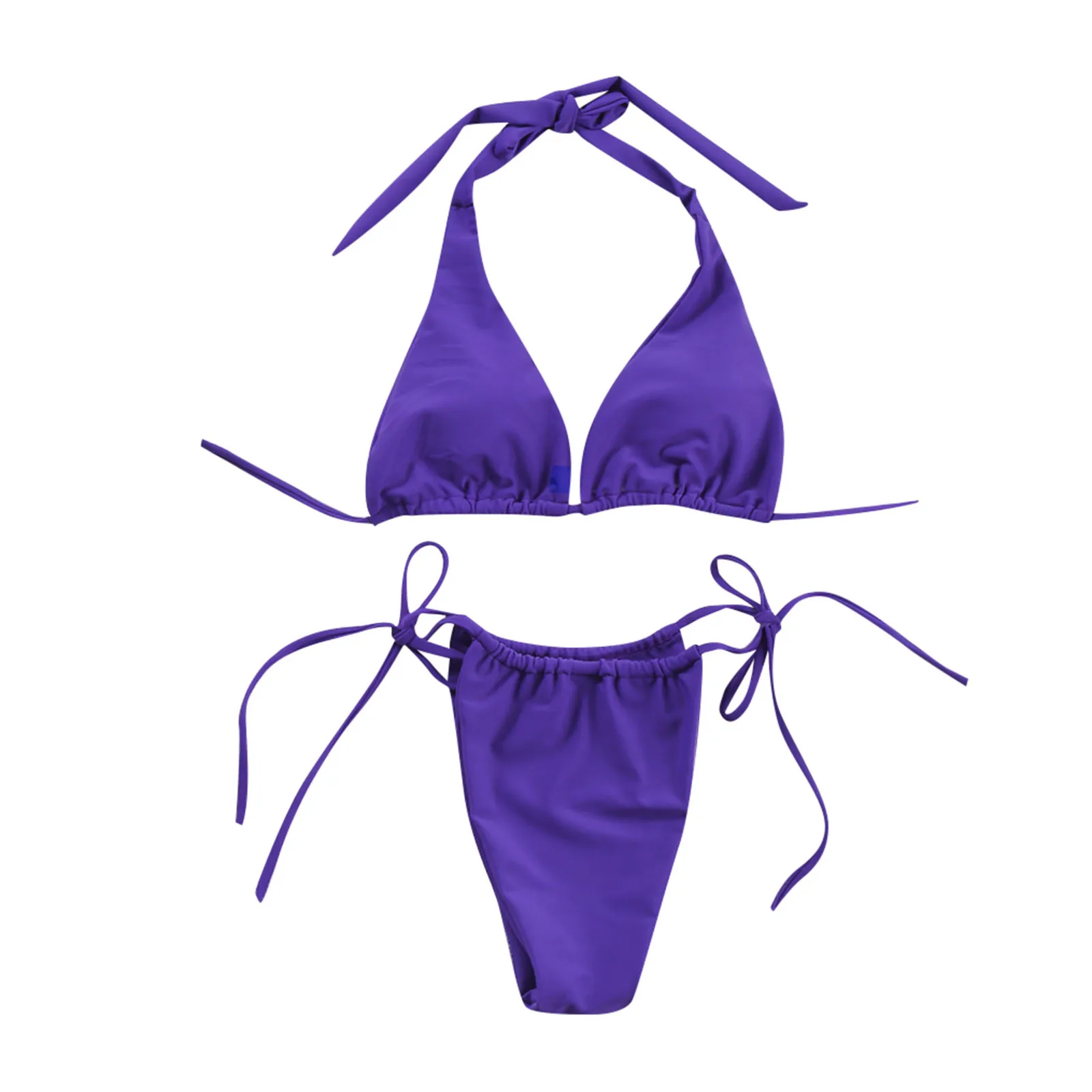 Женское пикантное микро-бикини, однотонное пуш-ап фиолетово-Желтое Бикини с высоким вырезом на шнуровке, комплект бикини из двух предметов, купальники