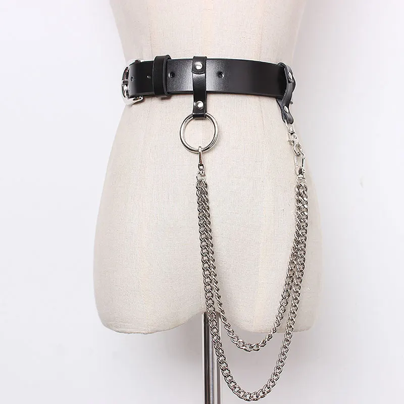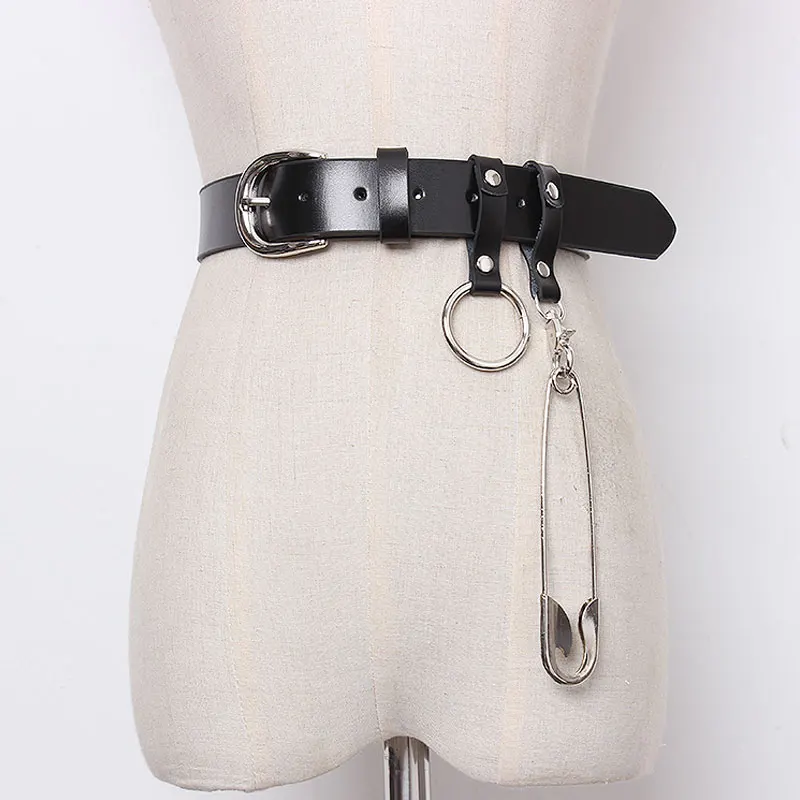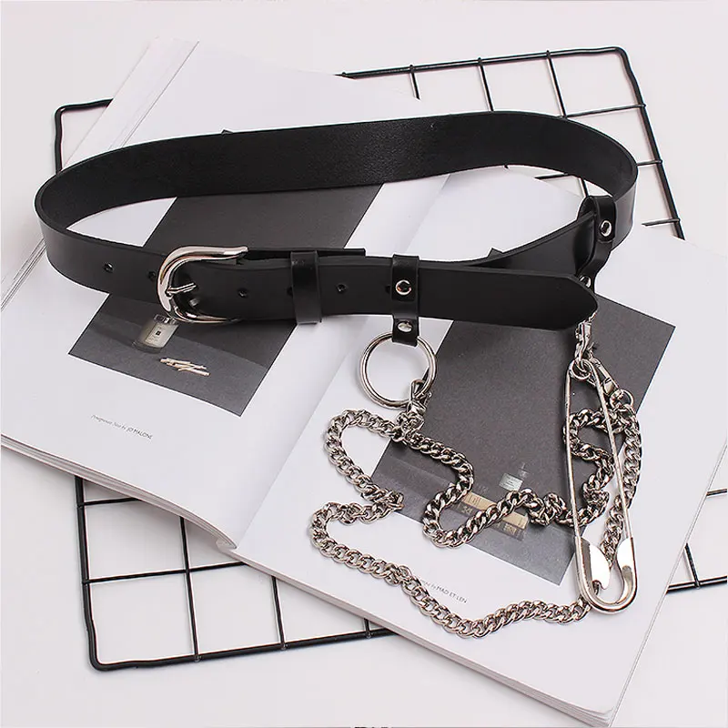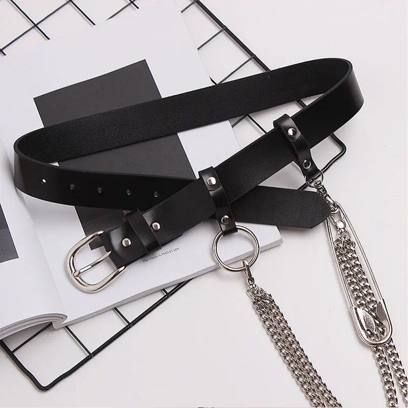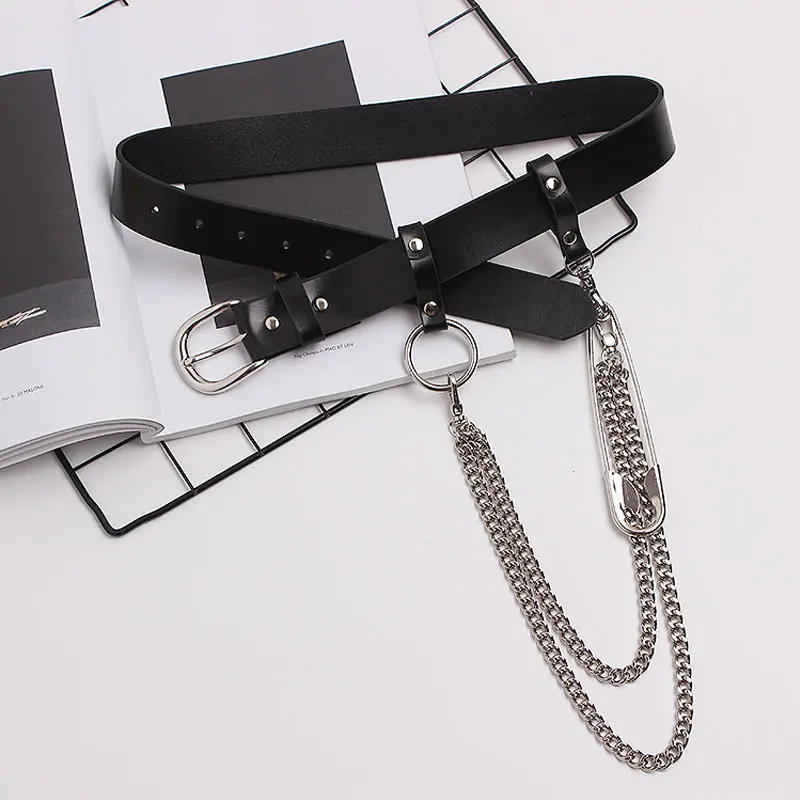 InsGoth панк металлическая цепь кожаный ремень Harajuku Y2K Готический женский черный поясной ремень в стиле Хай-стрит гранж Женская Брошь