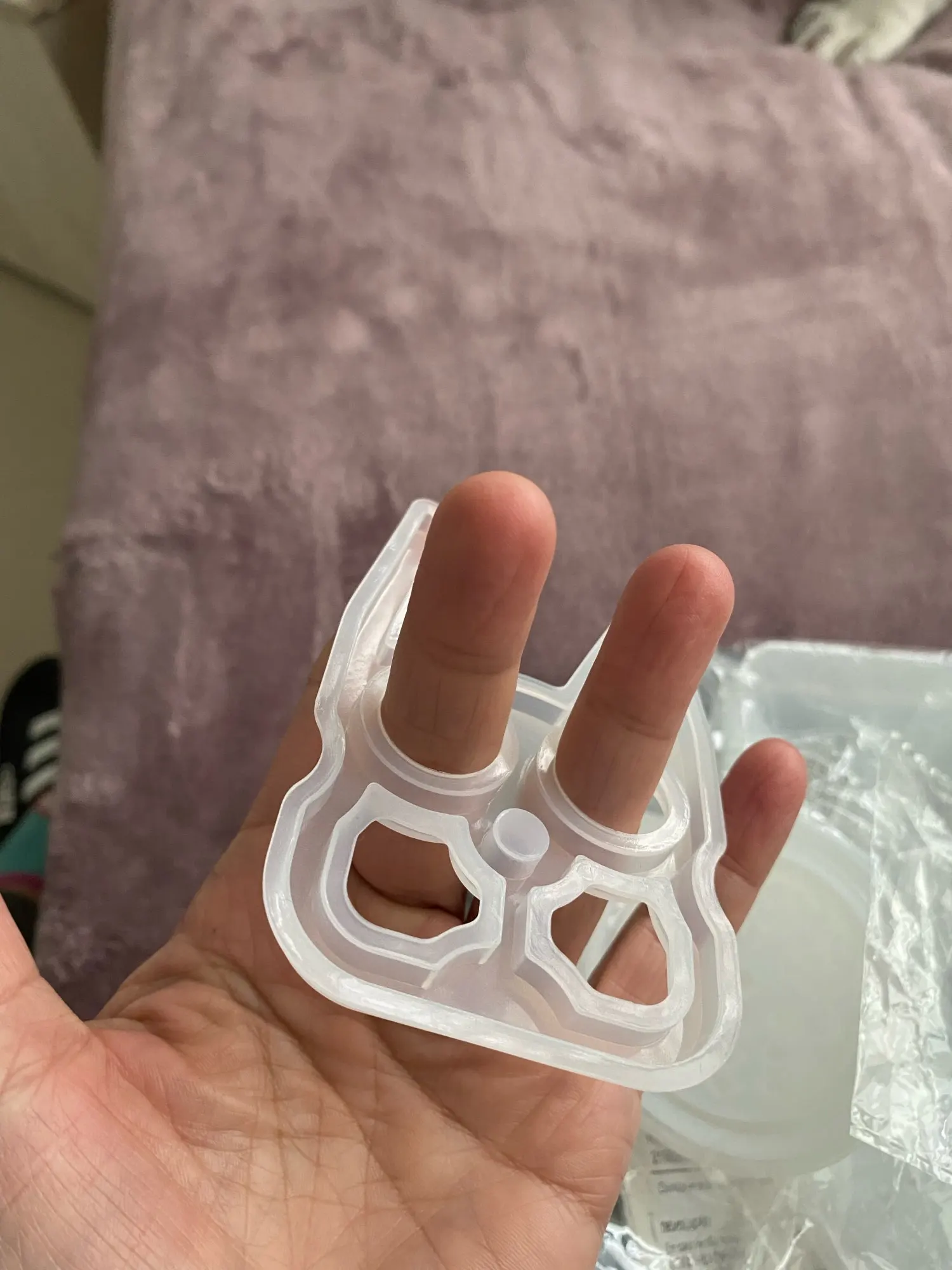 O buraco para colocar os dedos são menores que os outros moldes, parecem justos, vamos ver quando desenformar como fica.