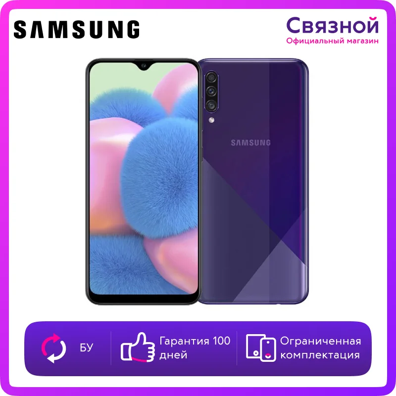 Обратите внимание:этот смартфон был в употреблении. В комплектацию входит только сам аппарат, без аксессуаров.Состояние хорошее. Смартфон активно использовали, но устройство исправно, все функции работают. Недостатки касаются только внешнего вида и их легко скрывают чехлы и стекла. На смартфон предоставляется гарантия 100 дней.ЖИВИТЕ ЯРЧЕ ВМЕСТЕ С БЕЗГРАНИЧНЫМ ЭКРАНОМОцените полное погружение в контент на большом 6,4-дюймовом безграничном V-экране смартфона Samsung Galaxy A30s. Смотрите свои любимые видео, играйте в игры и ведите видеотрансляцию на ярком HD+ Super AMOLED экране.ГОЛОГРАФИЧЕСКИЙ ПРИНТ И ЭРГОНОМИЧНЫЙ ДИЗАЙНСмартфон Samsung Galaxy A30s эффектно смотрится и отличается тонким дизайном. Благодаря эргономичной форме телефон комфортно ощущается в руке, что существенно облегчает навигацию по экрану. Телефон выделяется эффектным голографическим переливающимся рисунком корпуса. Вы можете выбрать телефон черного, белого или фиолетового цвета.ТРОЙНАЯ ОСНОВНАЯ КАМЕРА НА ВСЕ СЛУЧАИ ЖИЗНИТройная камера Samsung Galaxy A30s позволит вам запечатлеть самые интересные моменты вашей жизни. Основная камера 25 Мп обеспечит четкие снимки в любое время суток, а сверхширокоугольная камера 8 Мп с углом 123˚ позволит снять незабываемые пейзажи. Кроме того, c помощью камеры 5 Мп с датчиком глубины вы сможете сфокусироваться на самом важном объекте съемки.ОСТАВАЙТЕСЬ В ЦЕНТРЕ ВНИМАНИЯБлагодаря фронтальной камера 16 Мп Galaxy A30s и функции "Селфи-фокус" вы сможете создать потрясающие селфи.ВЫСОКАЯ ПРОИЗВОДИТЕЛЬНОСТЬ ДЛЯ БЫСТРОЙ РАБОТЫSamsung Galaxy A30s оснащен быстрым процессором и большой памятью. Новый 8-ядерный процессор и оперативная память 4 Гб обеспечат плавную и эффективную работу приложений. Загружайте больше и удаляйте меньше благодаря 32 Гб и 64 Гб встроенной памяти. А с помощью слота для microSD карты вы сможете в любой момент увеличить память еще на 512 Гб.ПРОГРАММА GAME BOOSTER ДЛЯ КОМФОРТНЫХ ИГРМаксимизируйте производительность с помощью программы Game Booster. Забудьте об искажениях и будьте в любой игре на высоте благодаря специальному интерфейсу и удобному меню. Кроме того, программа обеспечит плавность графики и естественное перемещение объектов в игровом сюжете. Game Booster проанализирует ваши действия и оптимизирует расход заряда батареи, температуру процессора и работу памяти.НАДЕЖНАЯ СИСТЕМА ЗАЩИТЫ ТЕПЕРЬ ДОСТУПНА КАЖДОМУВстроенная в телефон на аппаратном и программном уровнях платформа Samsung Knox защищает ваш телефон с момента его включения. Более того, это многоуровневая система безопасности обеспечит защиту от вирусов и вредоносных атак.СКАНЕР ОТПЕЧАТКОВ В ЭКРАНЕGalaxy A30s оснащен высокотехнологичной биометрической аутентификацией. Экранный сканер отпечатков распознает ваш уникальный отпечаток пальца. Хотите знать, кто сможет разблокировать ваш телефон одним простым движением? Только вы, и больше никто.СОСРЕДОТОЧЬТЕСЬ НА ВАЖНОМПользовательский интерфейс One UI поможет вам сконцентрироваться на том, что вам действительно важно и нужно. Аппаратное и программное обеспечение работают согласованно с вашим контентом и нужные функции и приложения должны быть всегда под рукой. Используйте ночной режим для более комфортной работы в темное время суток, а четкие и интуитивно-понятные визуальные элементы на экране должны стать вашей второй натурой.
