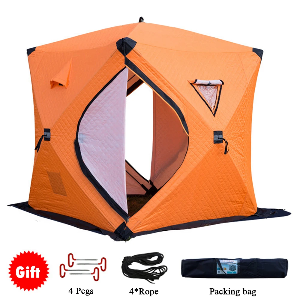 Трехслойная хлопковая теплая палатка для зимней подледной рыбалки, для 3-4 человек, кемпинга, туристическая палатка для зимней рыбалки, палатка для рыбалки