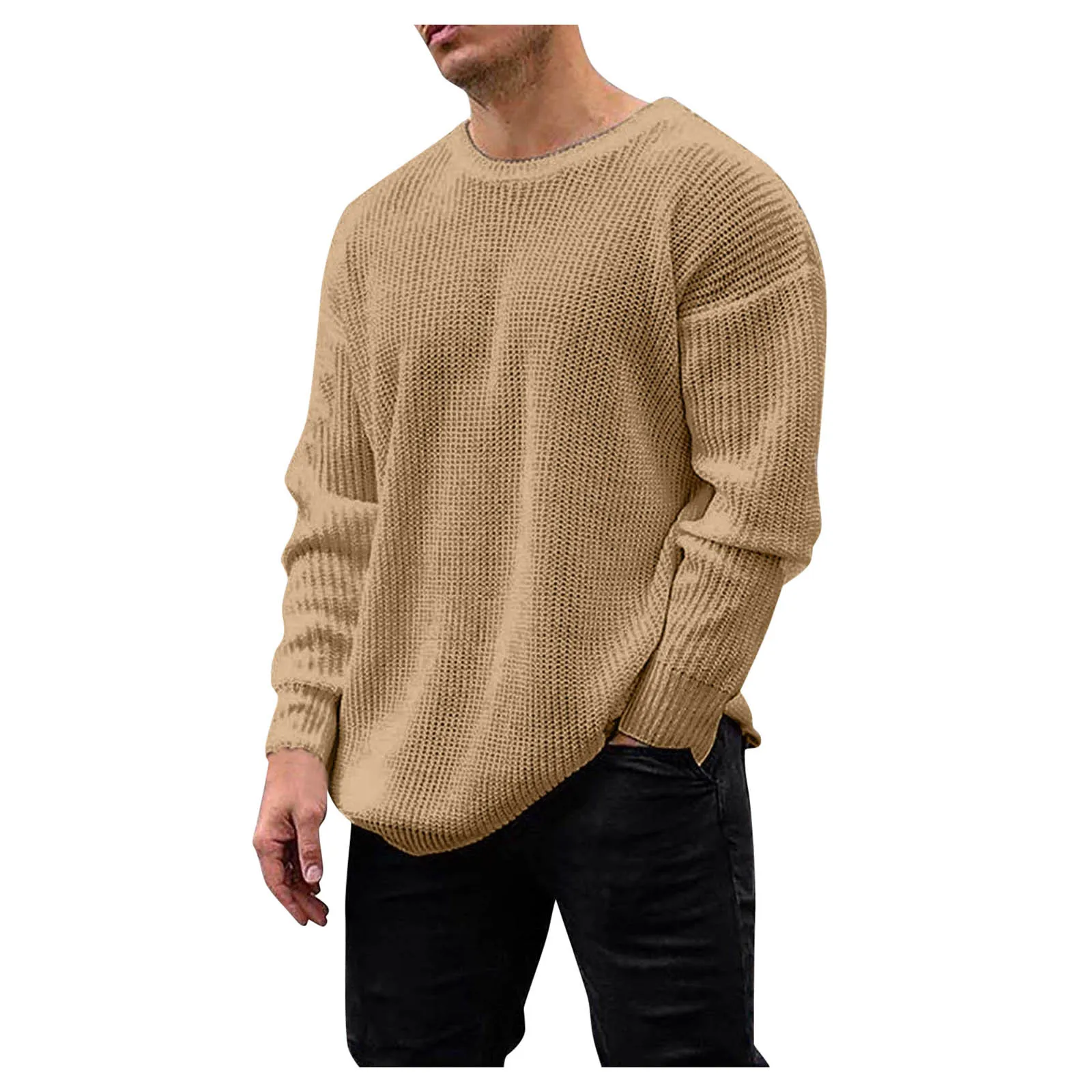 Мужской свитер, Осень-зима, толстовки 2021, модный свитер, мягкий теплый свитер с длинным рукавом и круглым вырезом, Однотонный свитер, топ, футболка, Вязаная блуза