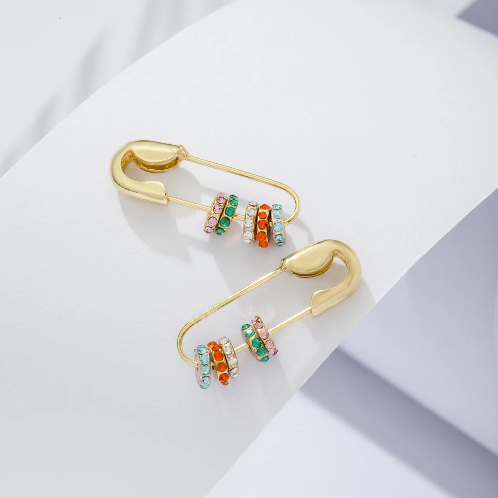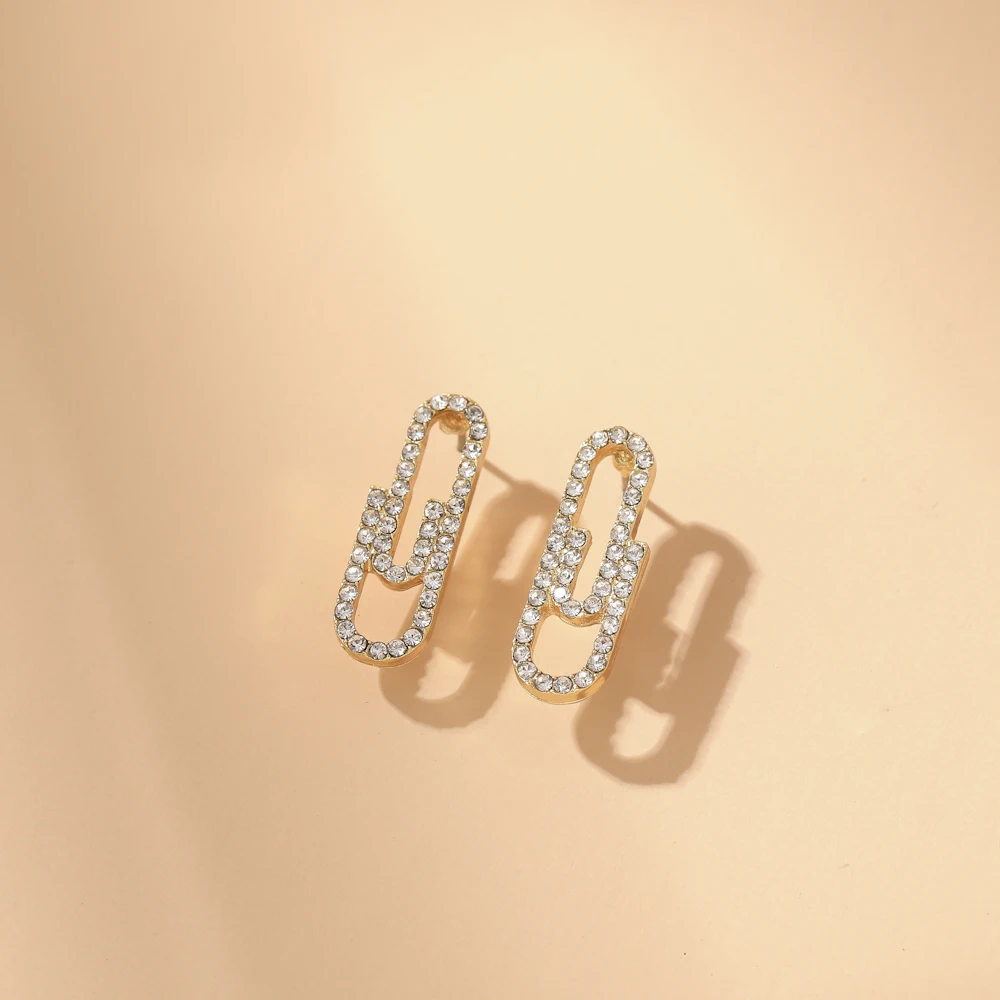 Серьги-гвоздики в виде скрепки VG 6YM, золотистые, розовые, минималистичные, ювелирные изделия
