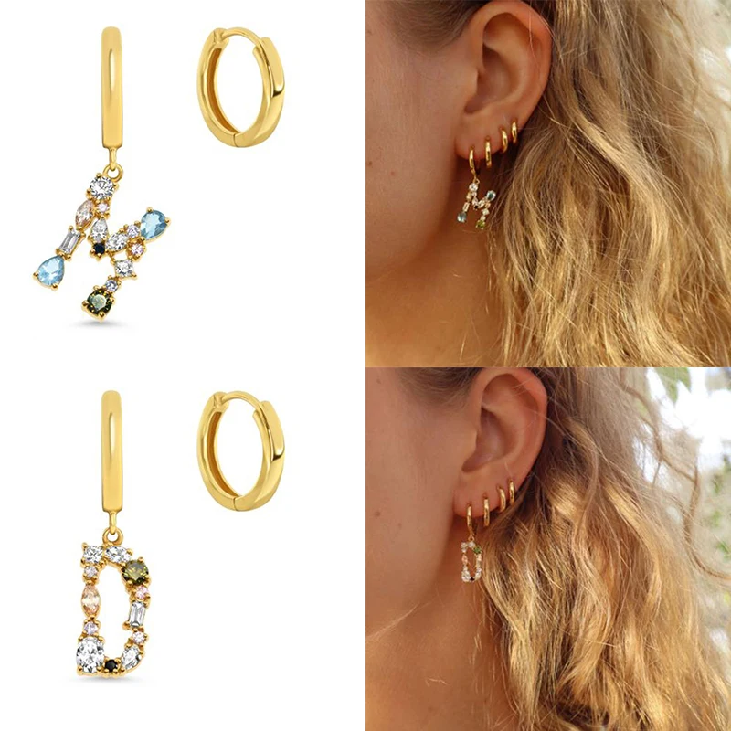 Aide 925 пробы цвет серебристый, Золотой 26 букв очарование серьги ...