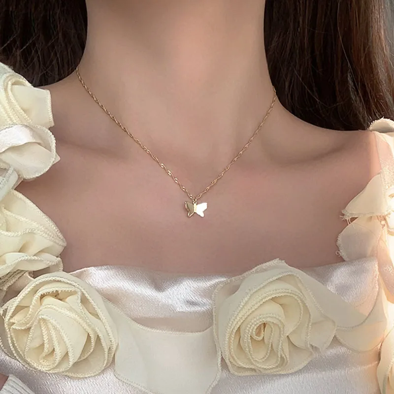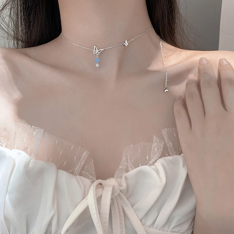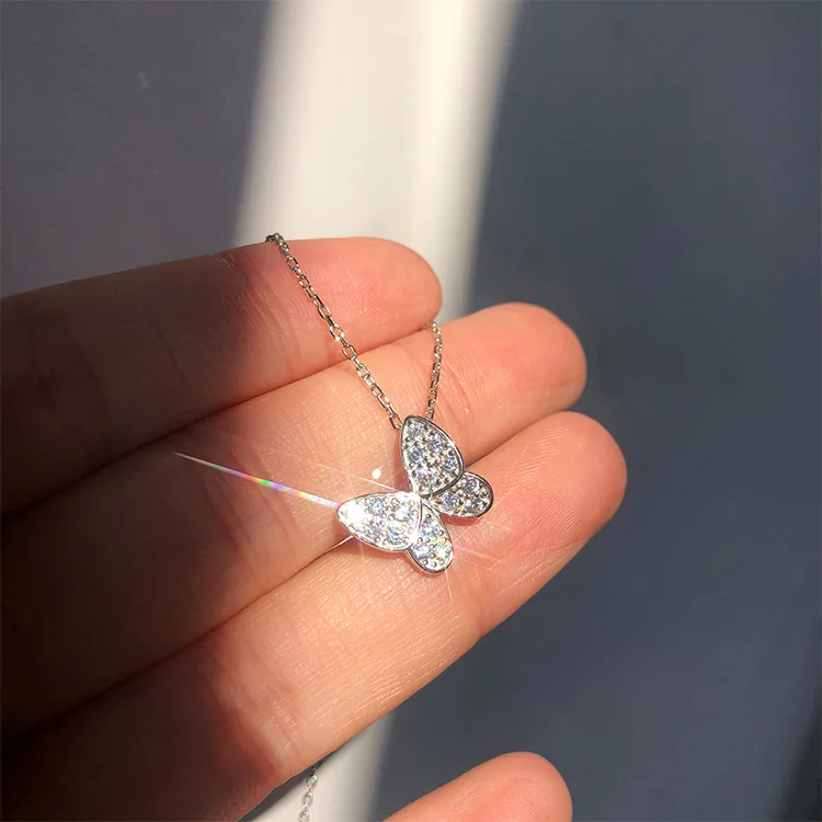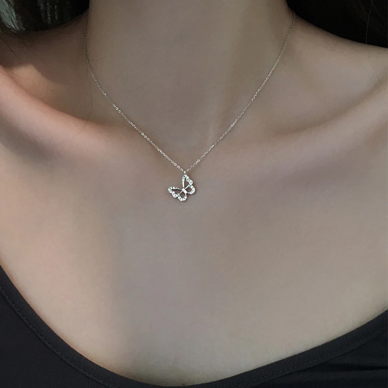 Серебряное ожерелье с бабочкой из стерлингового серебра 925 пробы для женщин, блестящая цепочка до ключиц с цирконием, ювелирное украшение, Вечерний Подарок
