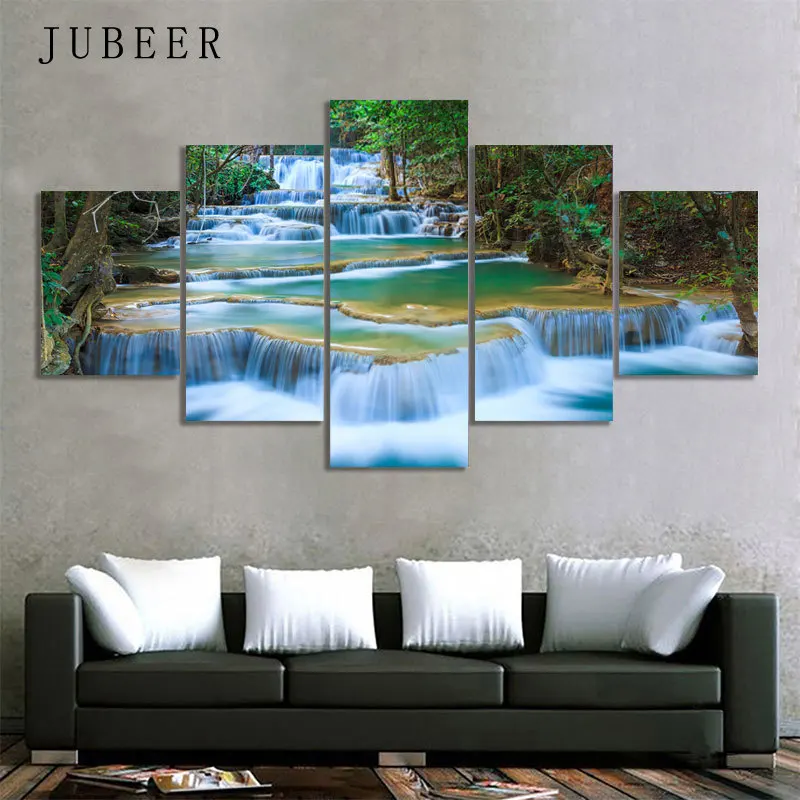 Модульная Картина на холсте, с изображением водопада и Морского Пейзажа, 5 шт.