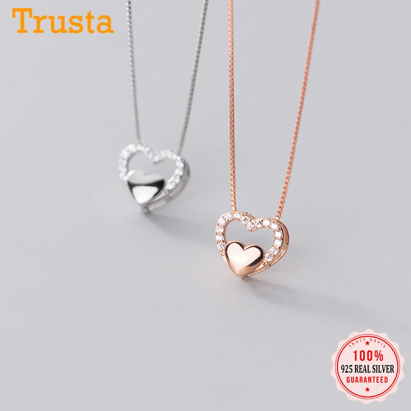 TrustDavis Настоящее серебро 925 пробы модное милое романтическое сердце CZ чокер ожерелье для женщин Свадьба День рождения ювелирные изделия из драгоценных камней DB060