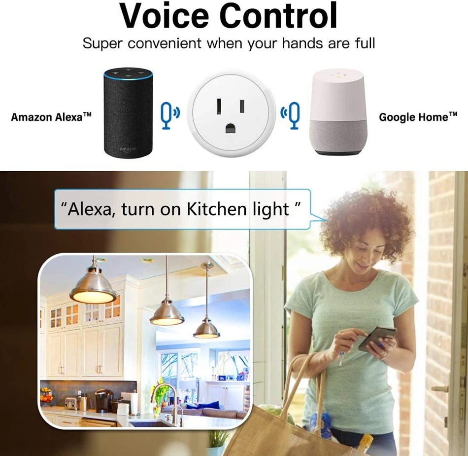 Умная ШТЕПСЕЛЬНАЯ Розетка WIFI идеально совместима с Amazon Alexa, Google Home и так далее. Просто дайте голосовую команду вашему домашнему помощнику Alexa или Google для управления устройствами, когда вы находитесь в пути.