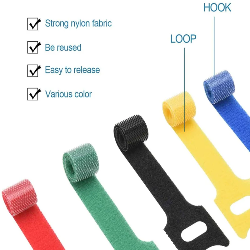 Кабельные стяжки с помощью самоприкрепляющегося крючка и материала петли популяризированы продуктами, они могут быть для переднего и заднего двойного использования.