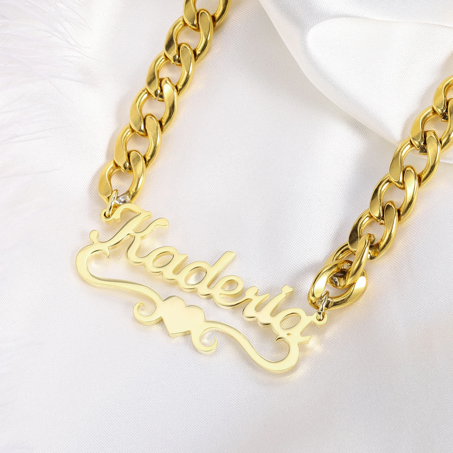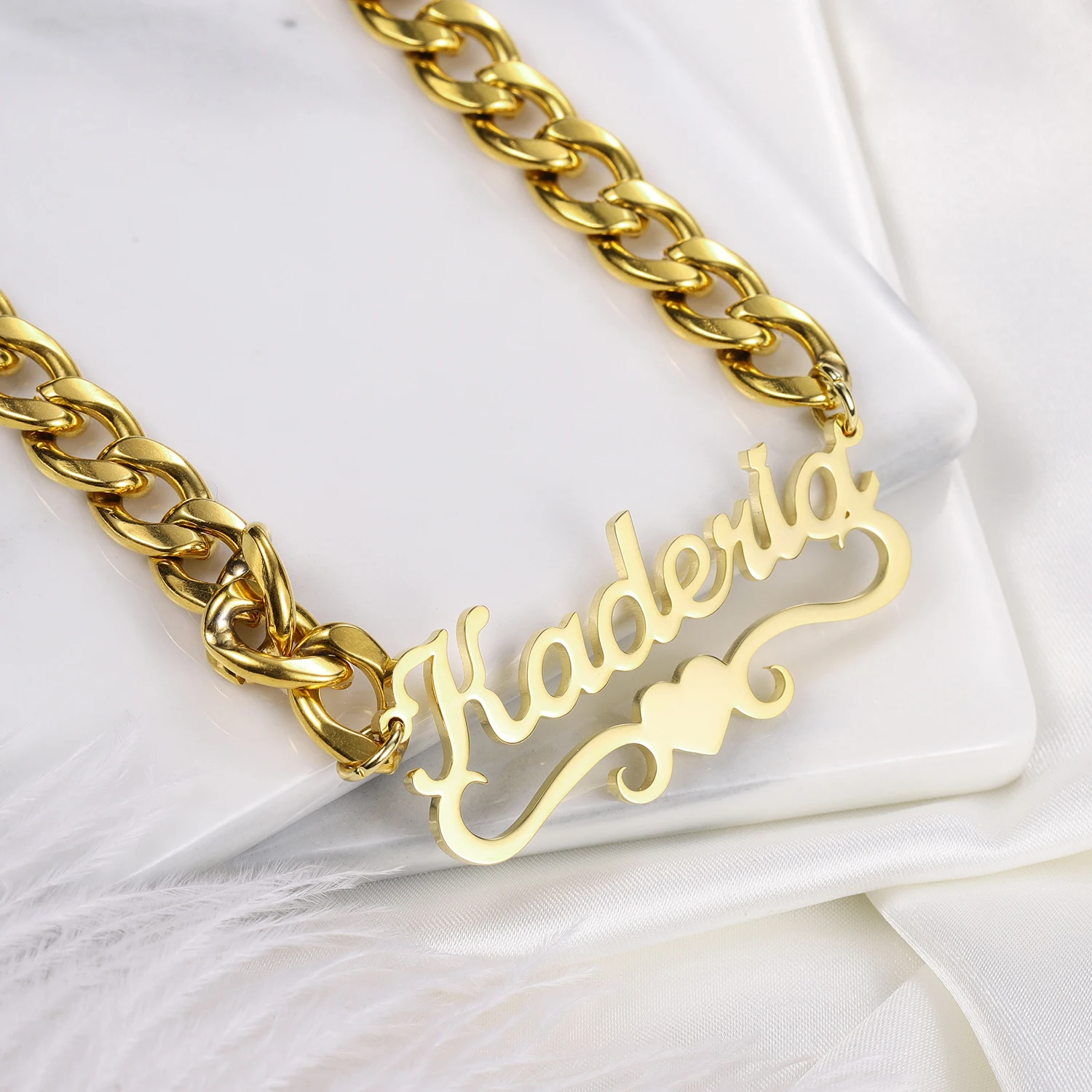 Ожерелье покрытое золотом кубинская цепь из нержавеющей стали с Пользовательское имя кулон Script шрифт ручной работы для мужчин ювелирные изделия для женщин Подарки