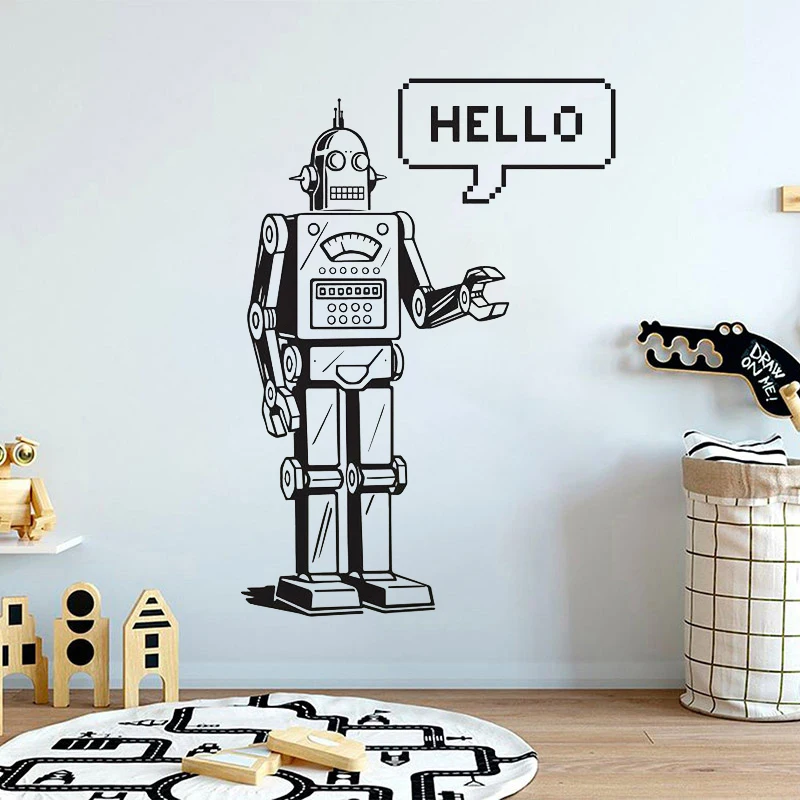 Робот-Наклейка на стену креативный Забавный трафарет Виниловая наклейка для детской комнаты домашний Декор Hello Art роспись Механическая наклейка s-постер