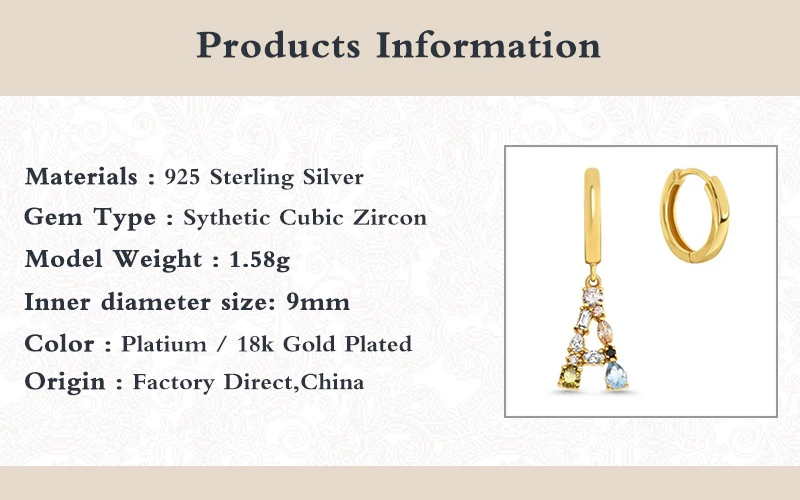 Серьги-кольца женские из серебра 925 пробы, 26 букв