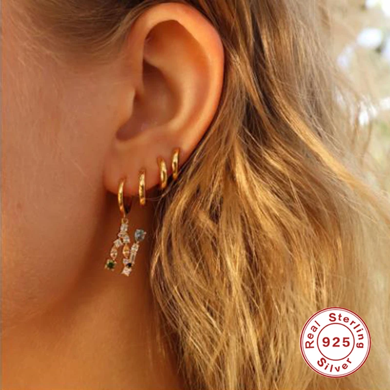 Автоклав 1 шт. двойные обручи серьги для женщин CZ стерлингового се...