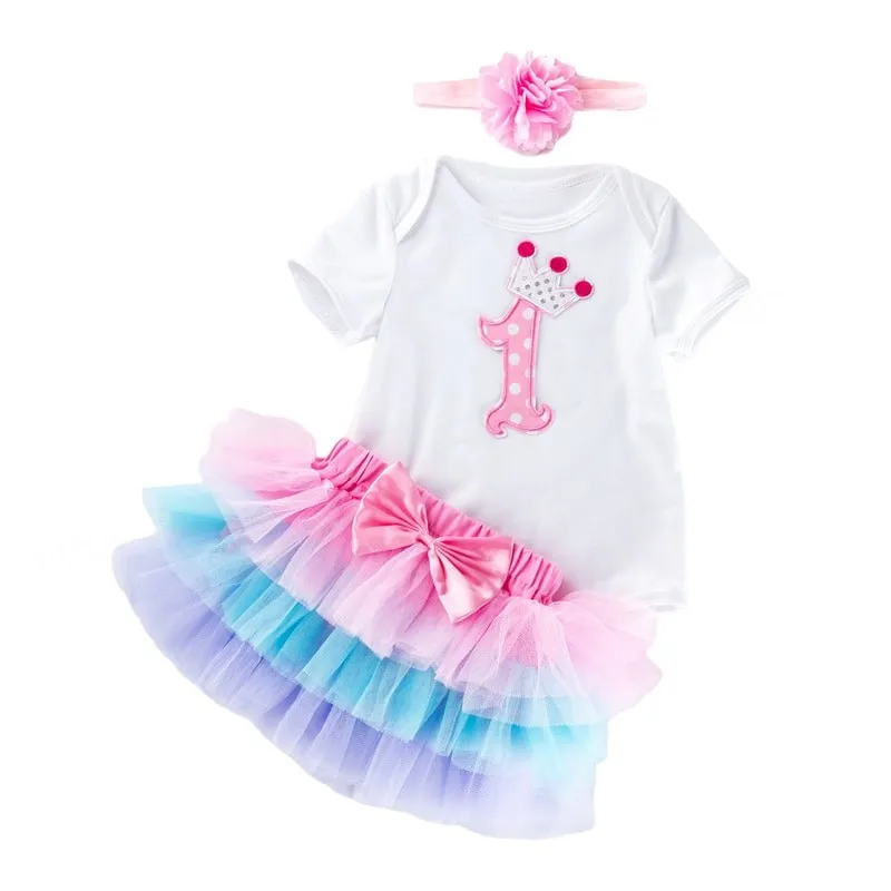 От 1 до 2 лет платье для дня рождения комплект из 3 предметов, От 1 до 2 лет для маленьких девочек, кружевная юбка-пачка на день рождения с повязкой на голову, летние платья для маленьких девочек