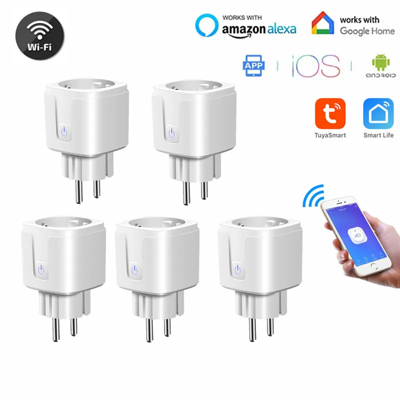 Беспроводная розетка для умного дома, 16 А, вилка Wi-Fi, европейская розетка с монитором питания, Беспроводная розетка с таймером, работает с приложением Alexa Google Home Tuya