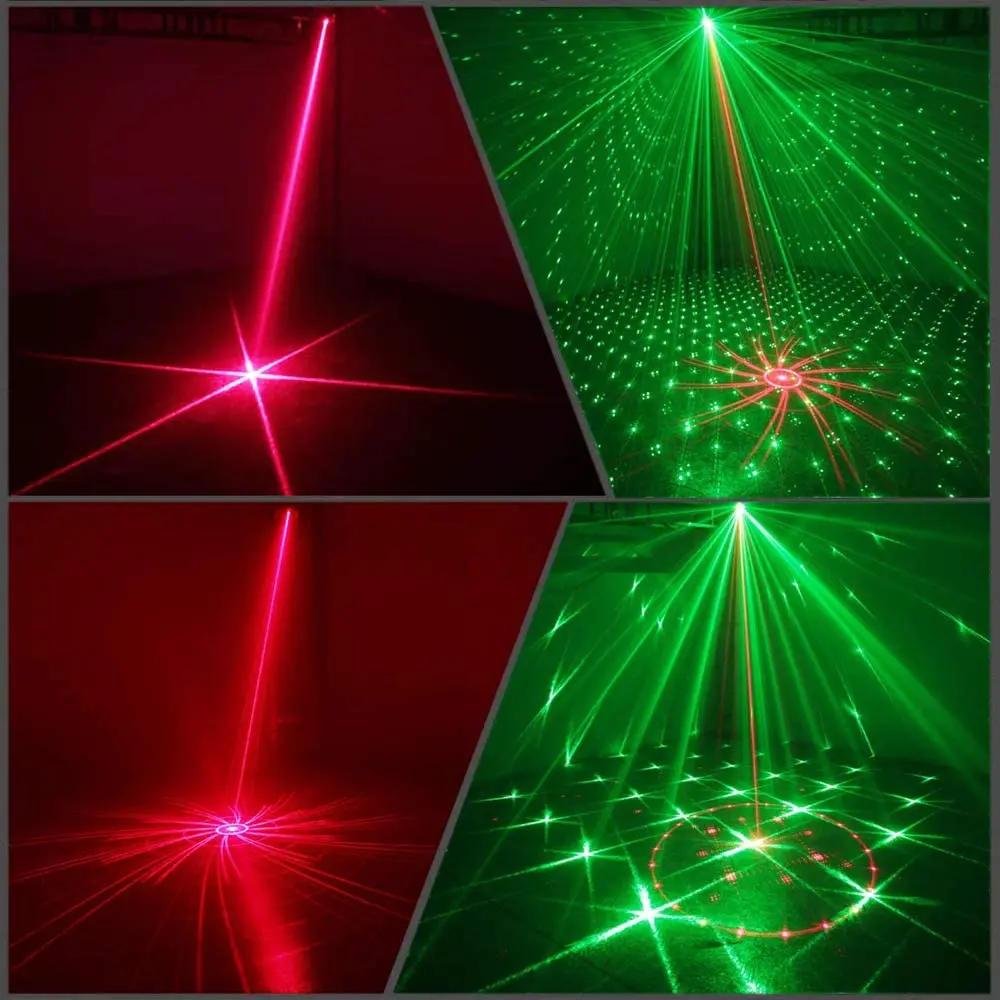 Характеристика:1. Голосовое управление и автоматическая модель2. Со встроенным вентилятором для охлаждения3. Стабильный и надежный, компактный и легкий.4. С шарнирным креплением, удобно разместить его в любом месте.5. Подходящие места: дискотека, балльные залы, комнаты KTV, бары, сцены, вечеринки и отели и т. д.6. Красный и зеленый светильник луч сверкает/двигается/комбайн/появляется/исчезает автоматически или в соответствии со звуком/музыкальным ритмом, волшебно и красиво.