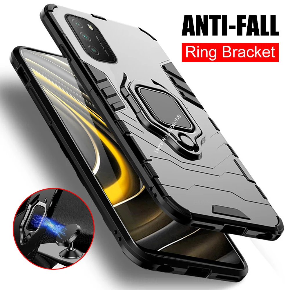 Автомобильный чехол с магнитным держателем, чехлы для телефона Xiaomi Pocophone M3 M 3 3 M Little PocoM3 6,53 дюйма, бронированный противоударный защитный чехол с кольцом