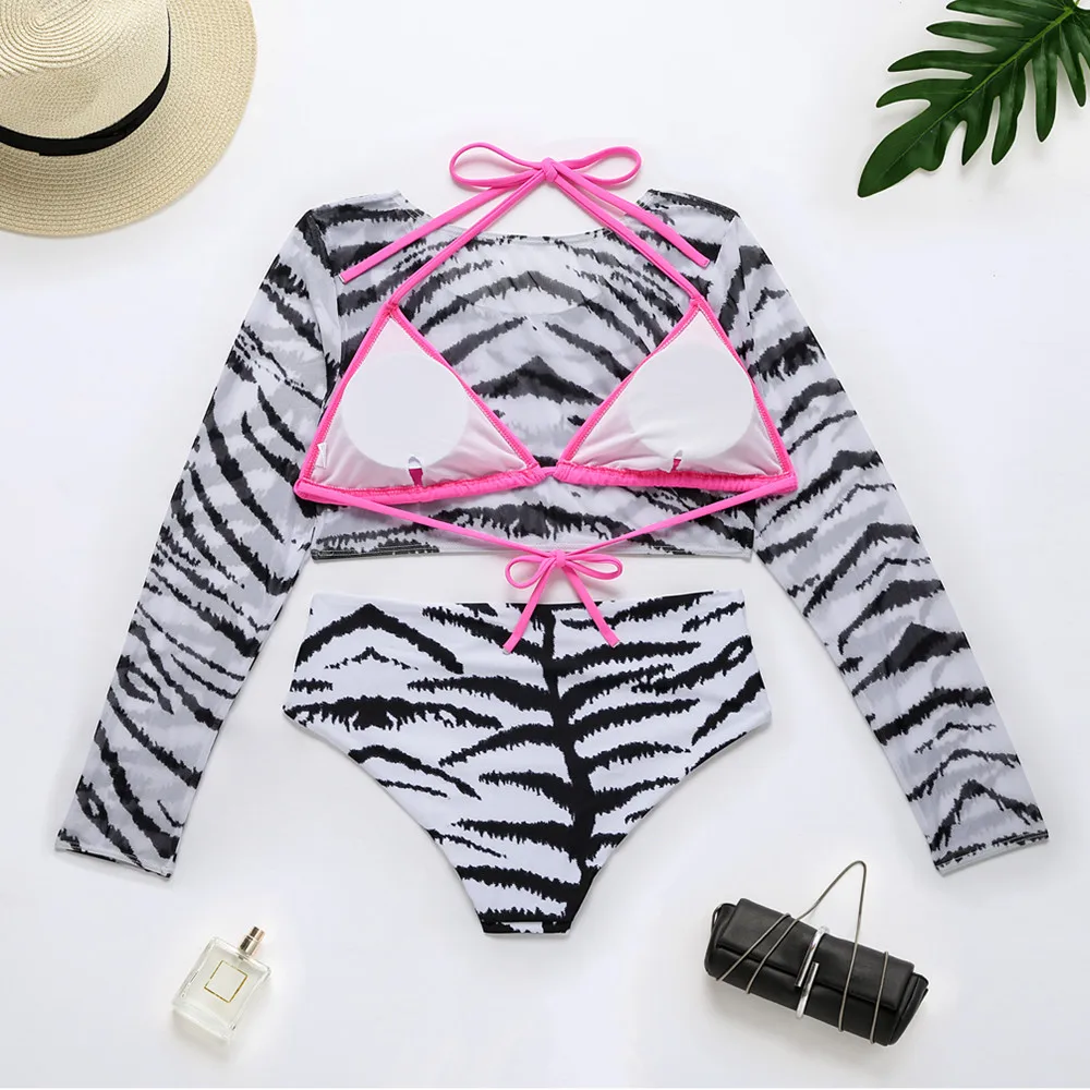 Купальник-бикини с длинным рукавом и высокой талией, 3 предмета