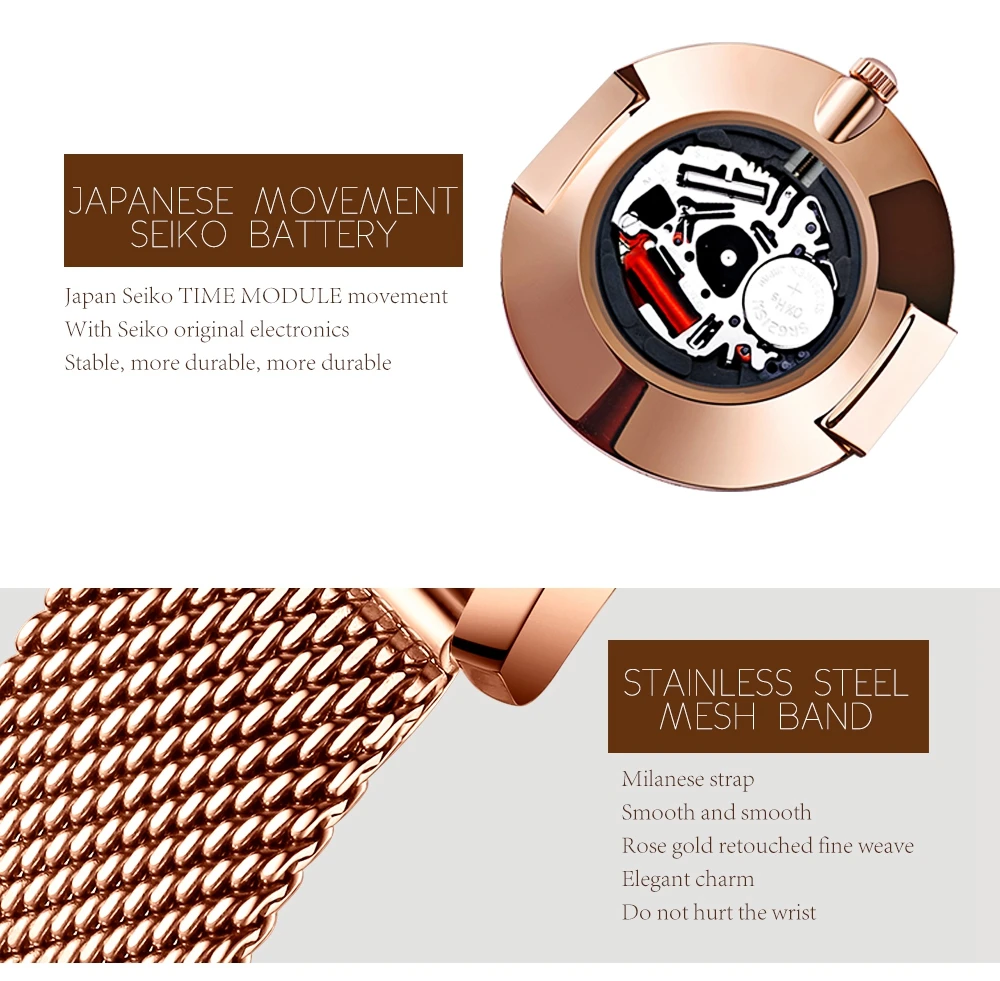 Часы женские кварцевые из нержавеющей стали, розовое золото, водостойкие