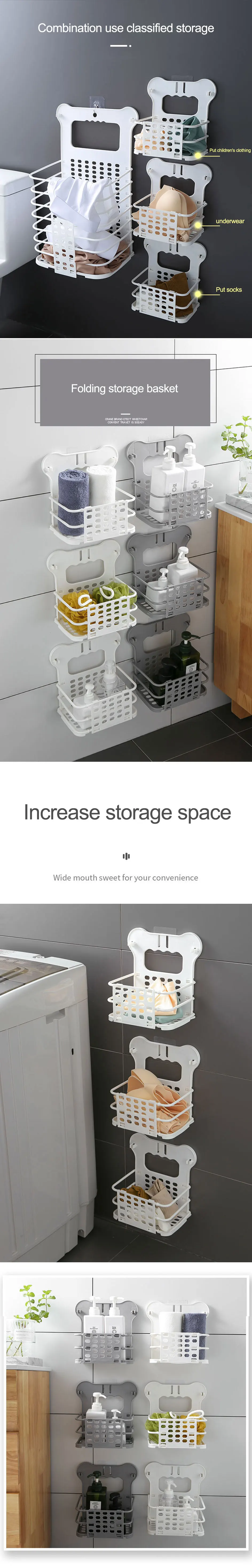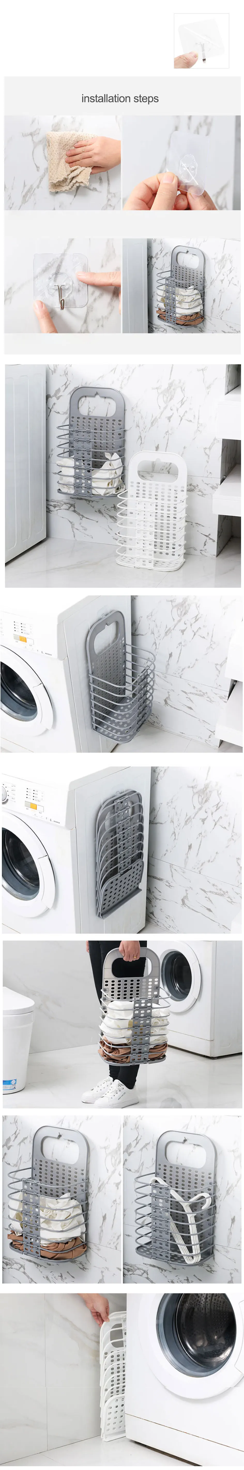 Складная корзина для белья, настенное крепление для хранения в ванн...