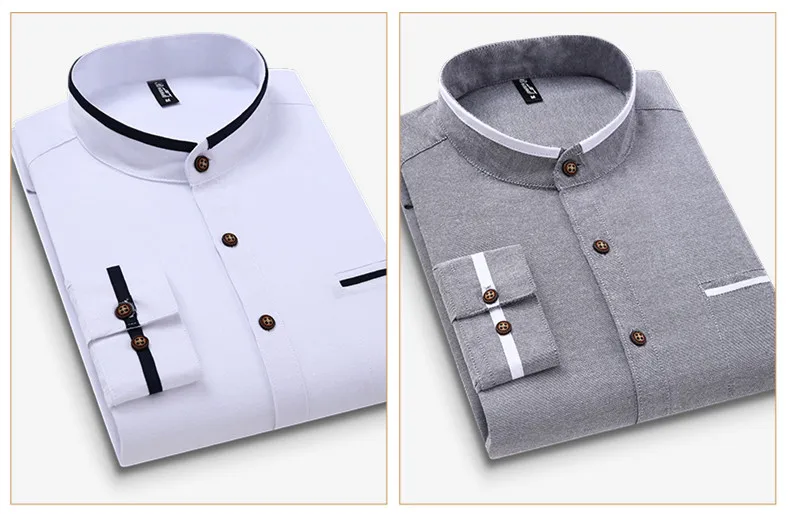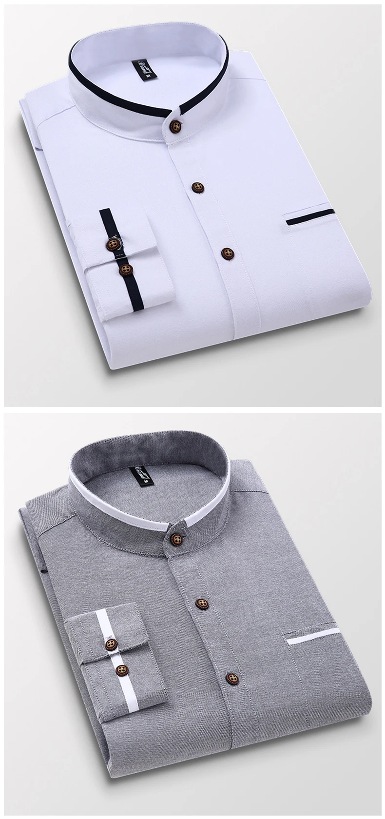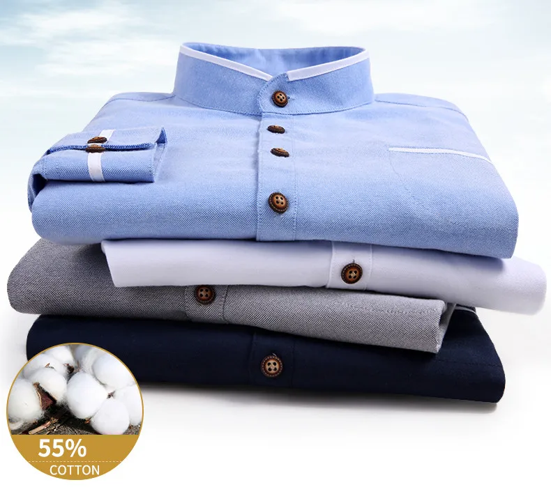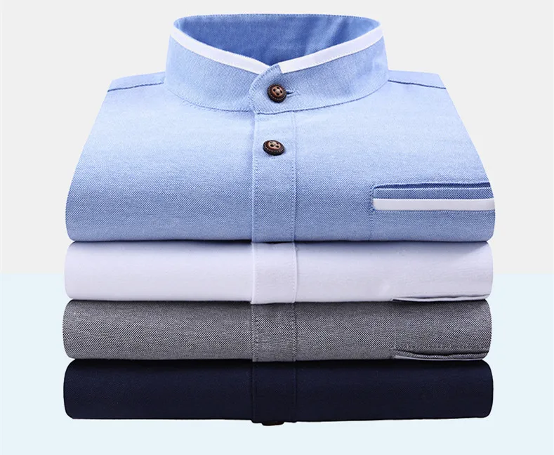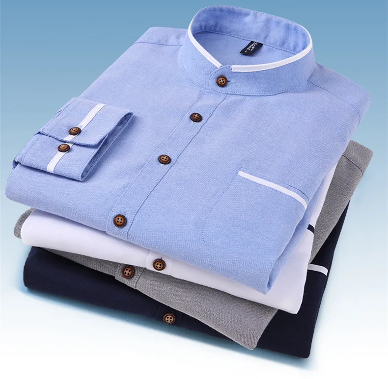Мужская рубашка с длинным рукавом, толстые рубашки, повседневная однотонная Белая оксфордская рубашка с одним накладным карманом и стойкой
