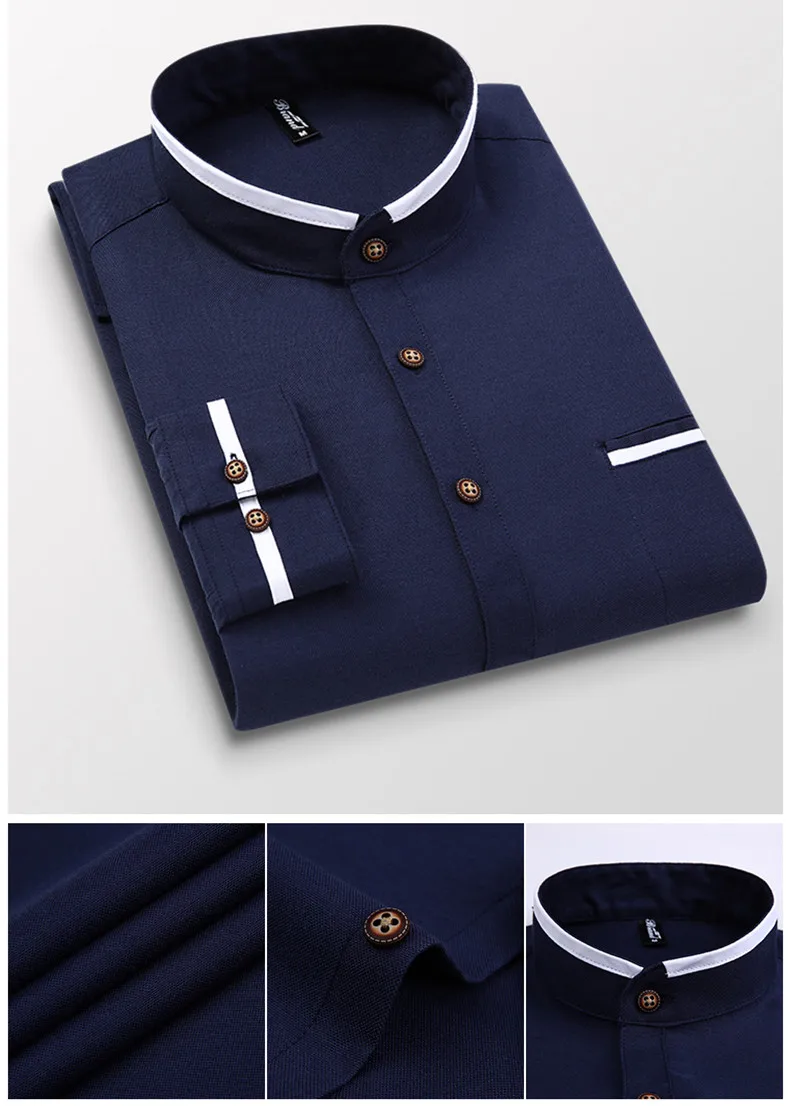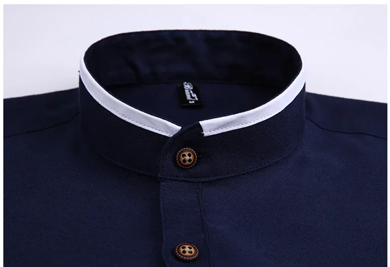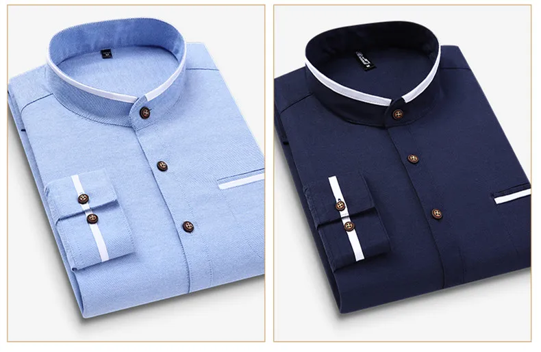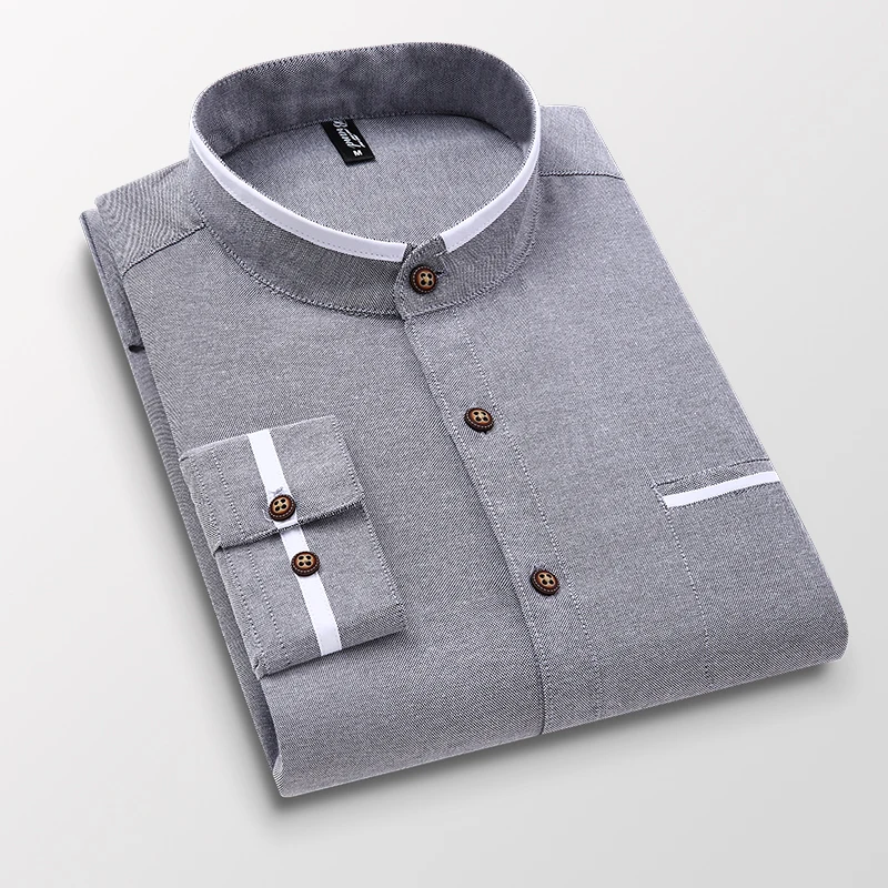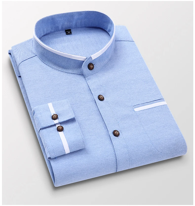 Мужская рубашка с длинным рукавом, толстые рубашки, повседневная однотонная Белая оксфордская рубашка с одним накладным карманом и стойкой