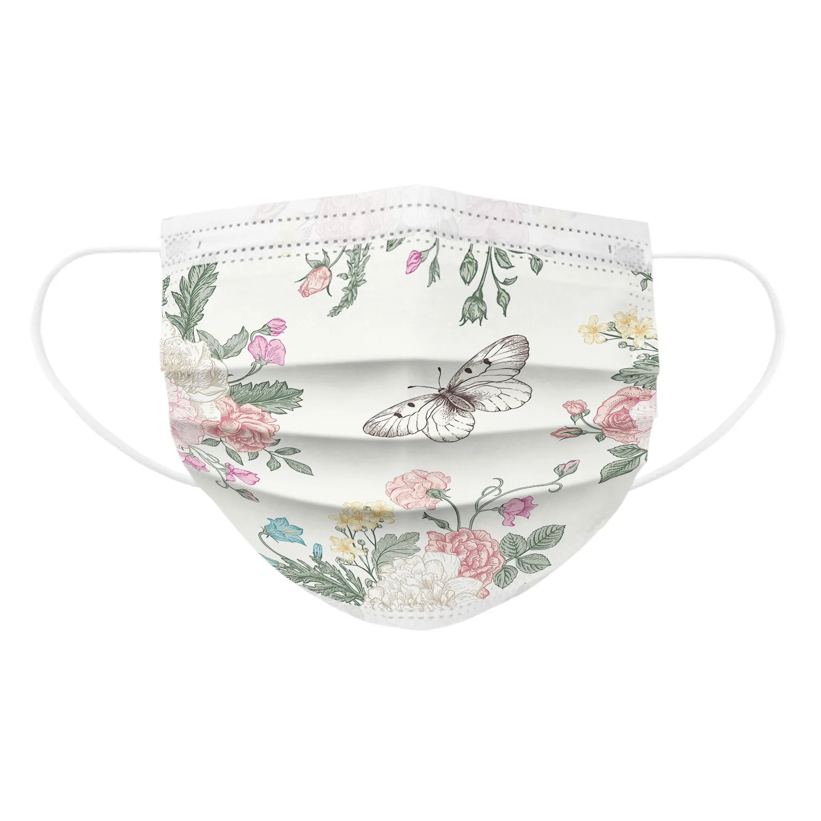 Дышащая одноразовая трехслойная маска с принтом бабочки для взрослых