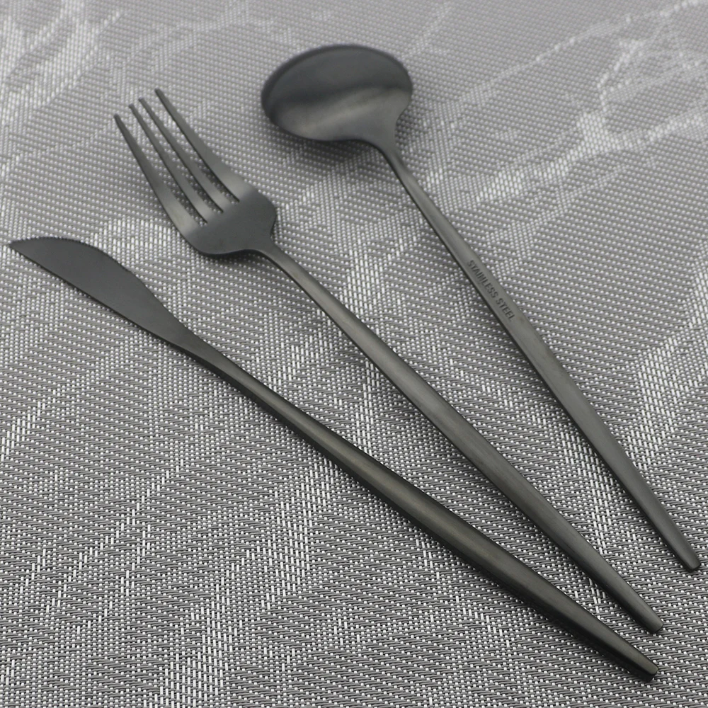 Набор черных матовых столовых приборов, ножи, вилки, ложки, набор с...