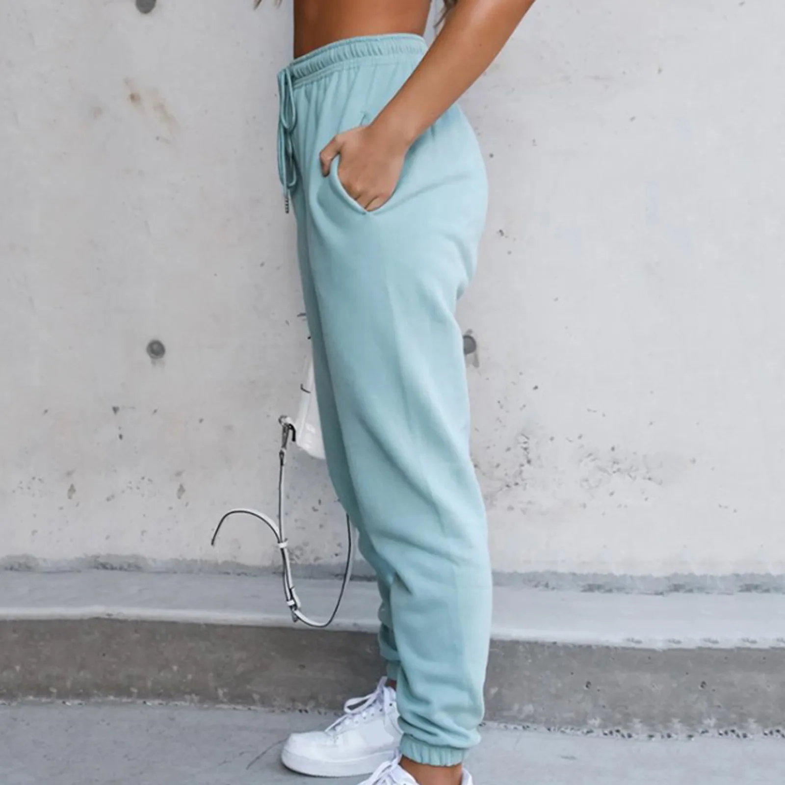 Брюки-багги Женские однотонные с эластичным завышенным поясом, повседневные свободные штаны в стиле хип-хоп, модные штаны для бега, 2021