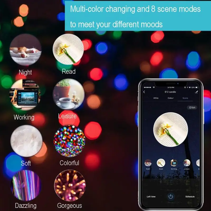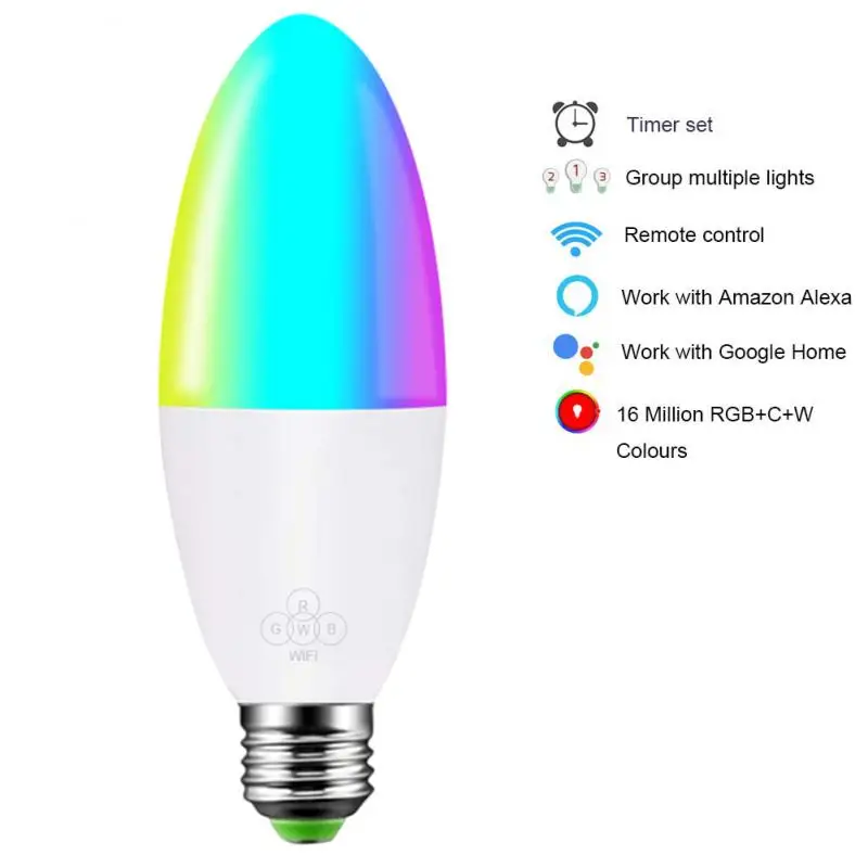 Умсветильник Светодиодная лампа E14 E26 E27 B22 с Wi-Fi, осветительный прибор с регулируемой яркостью и функцией таймера, 6 Вт, работает с AlexaGoogle Home