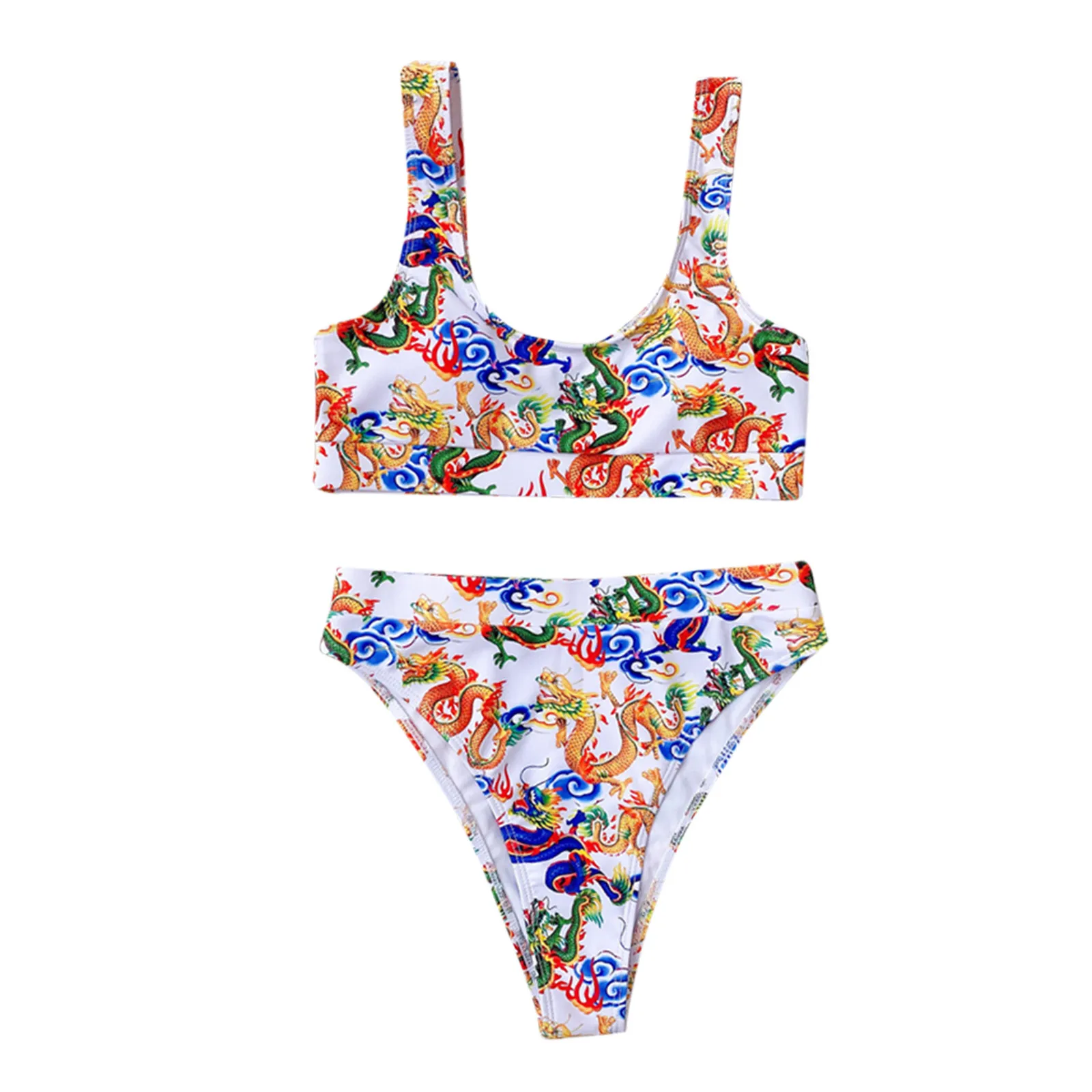 Бикини с высокой талией и принтом дракона, 2021, женский купальник,...
