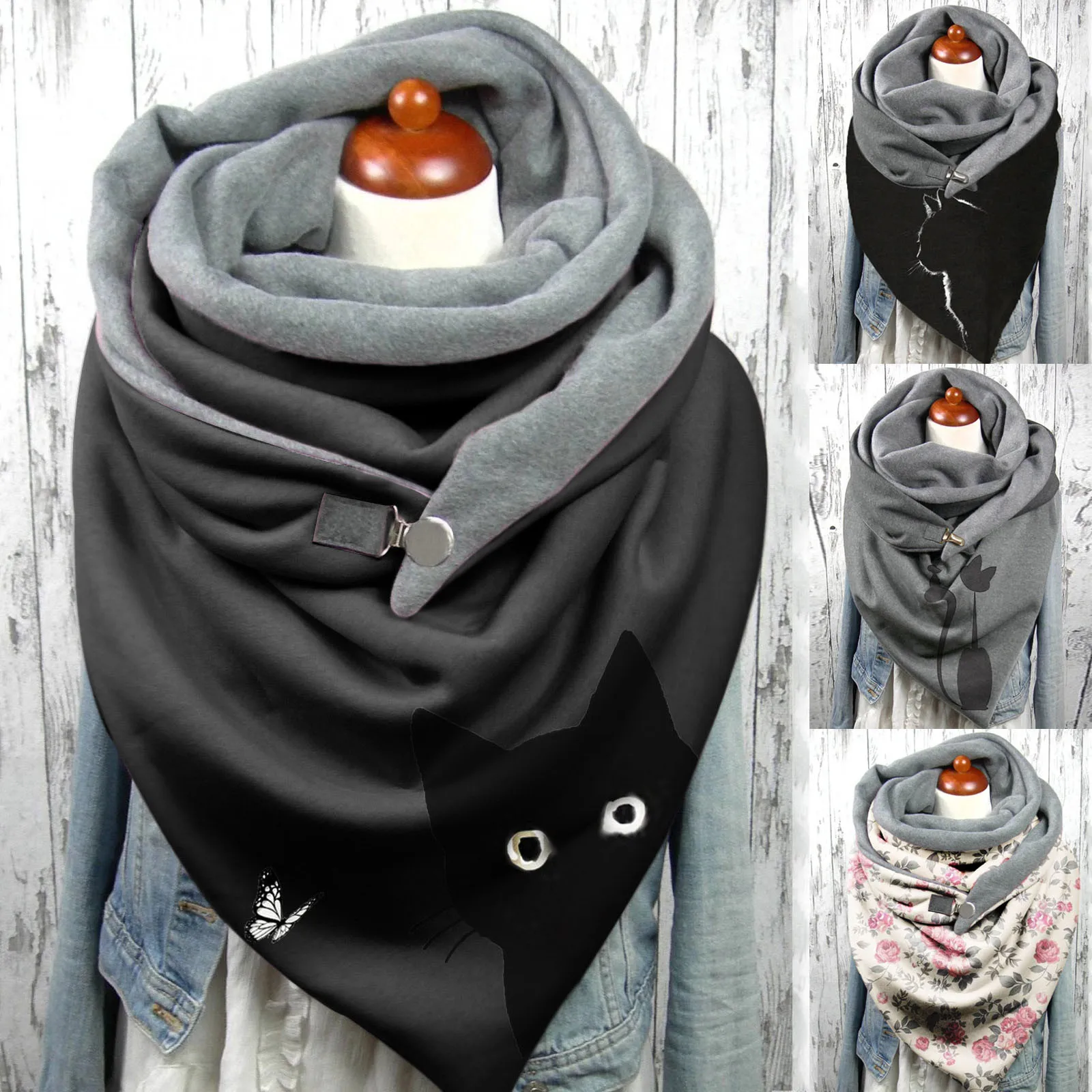 Женский шарф с принтом, Модный Универсальный мягкий шарф на пуговицах, шапка, зимняя женская шарфы