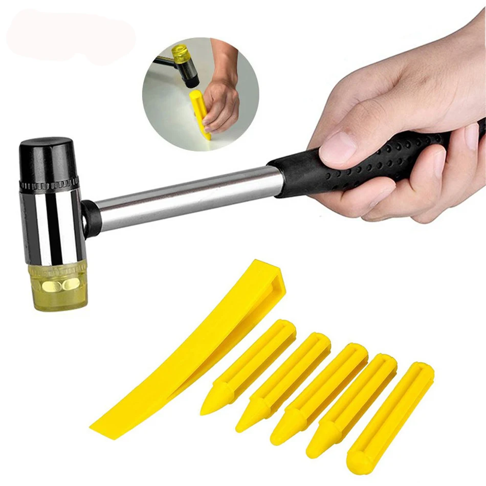 Набор инструментов для удаления вмятин, резиновый молоток + 5 шт. желтых ручек для выравнивания без покраски, ручной инструмент для удаления вмятин с Градом