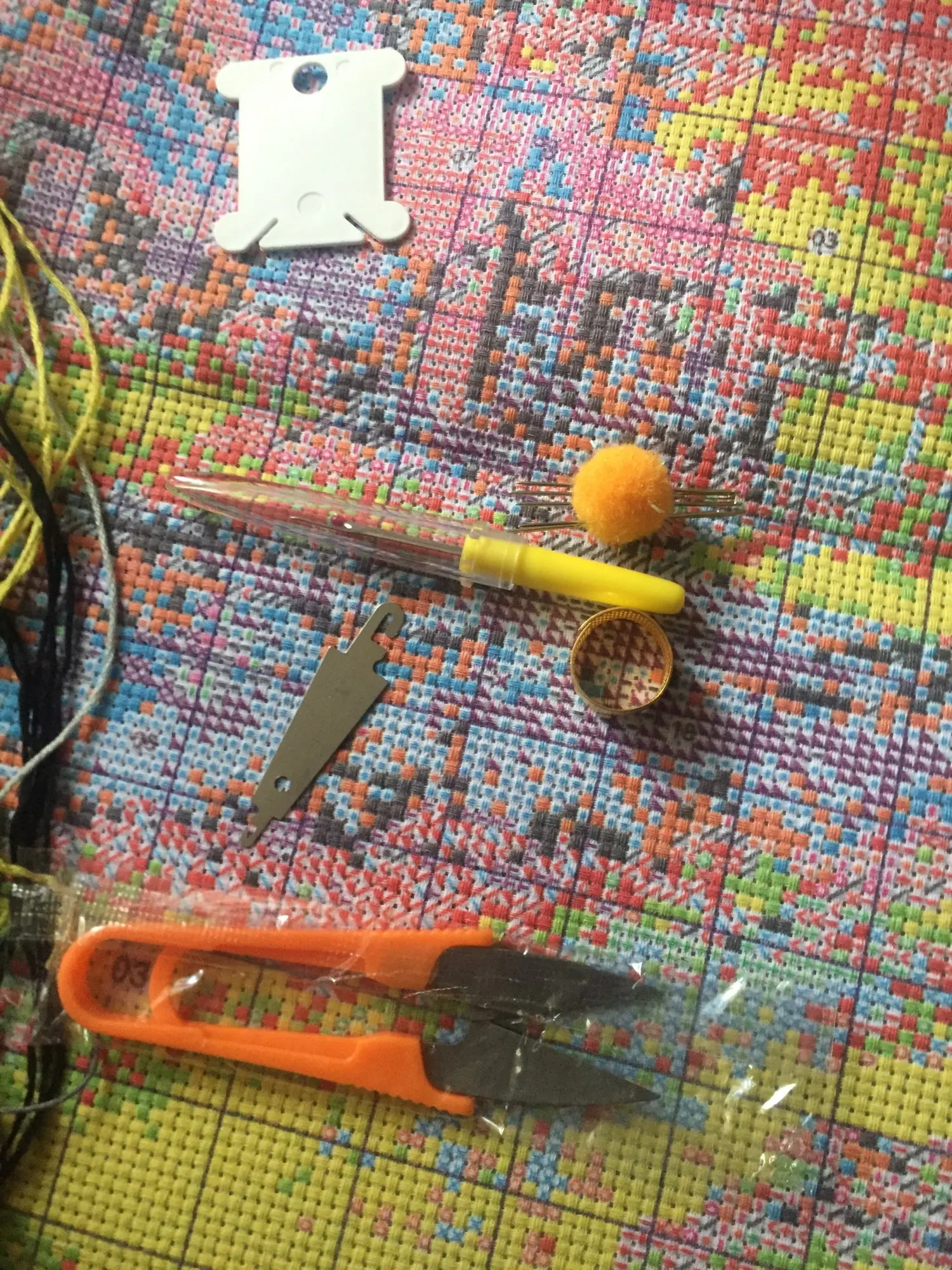 отлично очень быстрая доставка. канва с принтом. в комплекте ножнички иголочки напёрсток и ещё какая то штучка короче полный набор продавца советую.