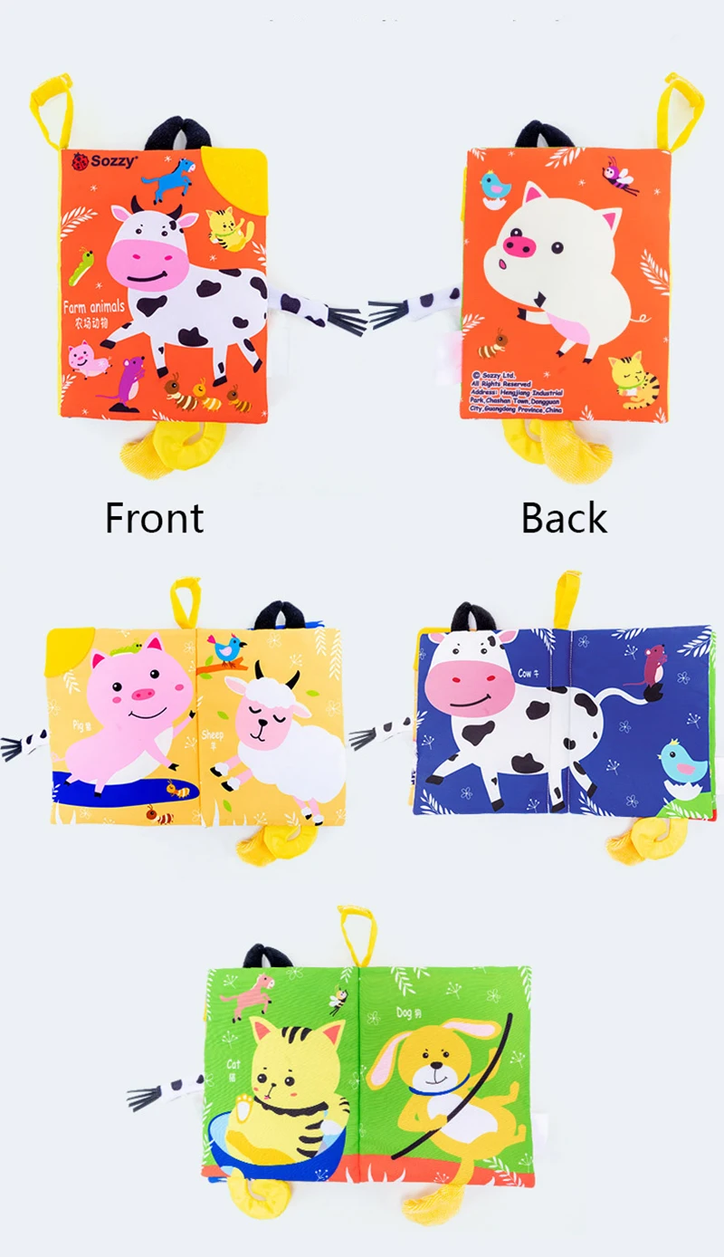 Тихая книга для детей 0-12 месяцев, Детская тканевая книга с хвосто...
