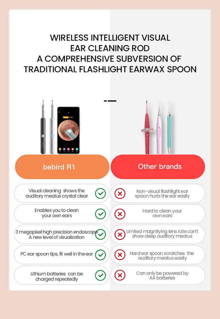 Youpin Bebird R1 умные визуальные ушные палочки эндоскоп 300 Вт высокоточная мини-камера для ушей Otoscope уход за здоровьем ушной очиститель