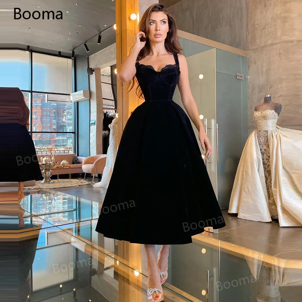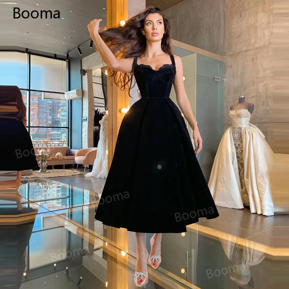 Черные бархатные короткие платья для выпускного вечера Booma, милое велюровое платье длиной до середины икры, на тонких бретелях, трапециевидные вечерние платья