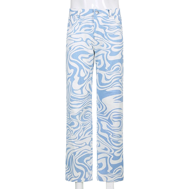 Женские брюки IAMSURE с принтом зебры, модная уличная одежда, средняя талия, осень-весна, широкие брюки, Корейская Повседневная мода в Корейском стиле