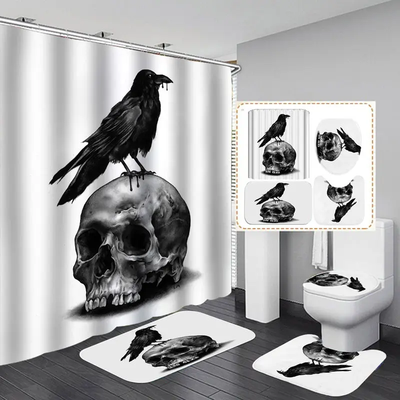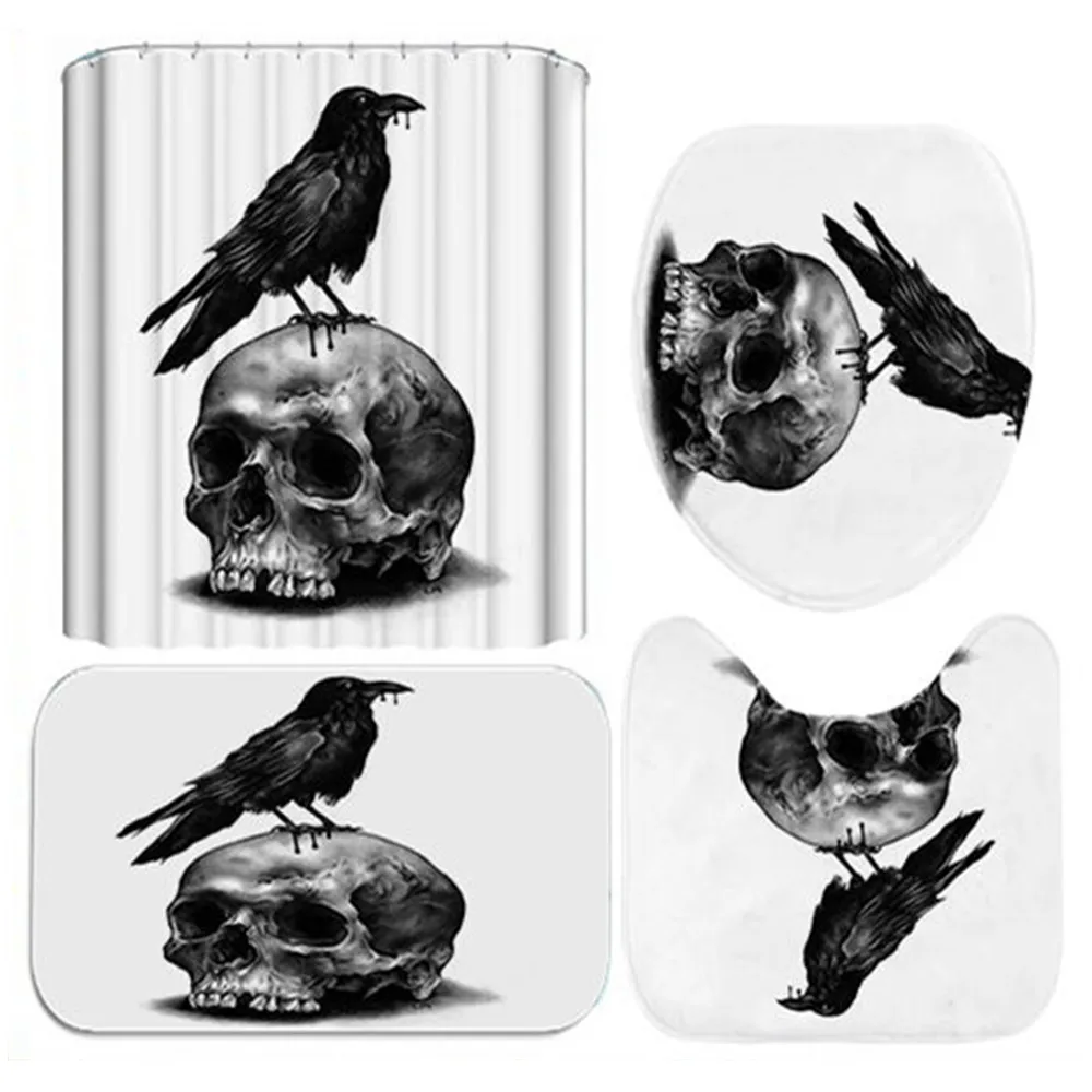 Занавеска для душа из полиэстера с художественным принтом, нескользящий коврик для ванной, крышка для унитаза, коврики, набор украшений для дома и ванной, череп ворона