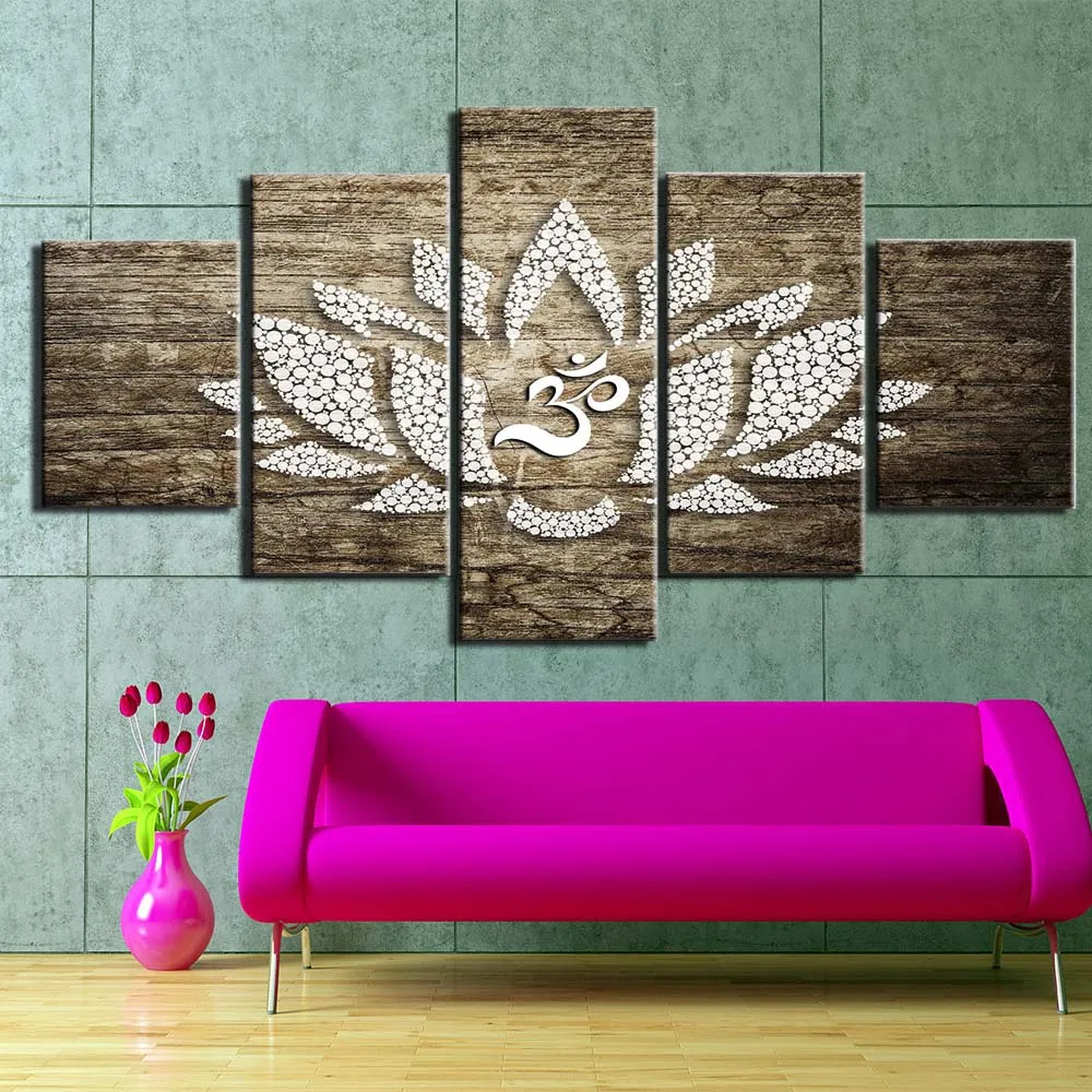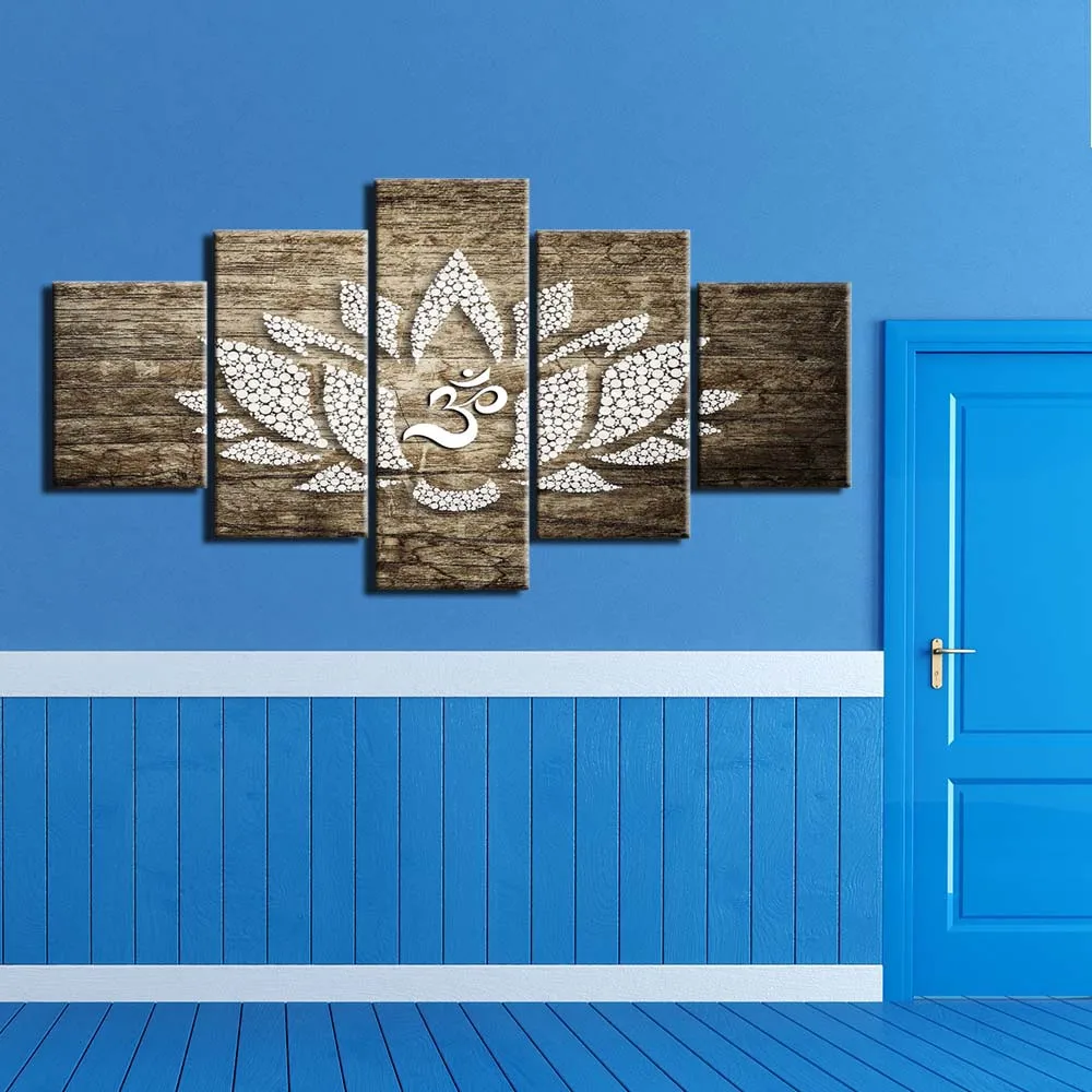 Om Lotus Abstract Zen Yoga 5 pcs Modern Home Wall Decor Canvas Picture