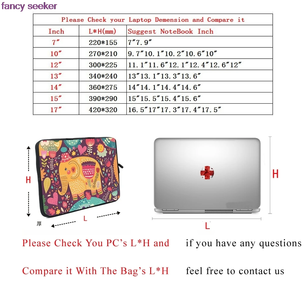 Примечание:Возможны незначительные отклонения в 0,5-1,8 см, пожалуйста, проверьте, какой размер рукава подходит для вашего ноутбука!