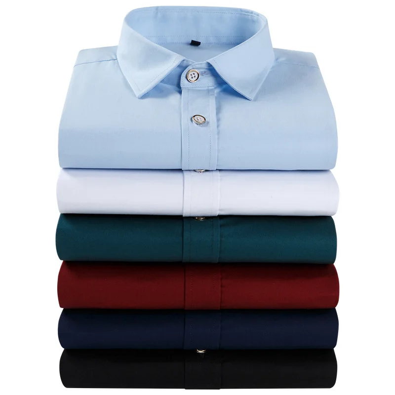 Хлопковые повседневные рубашки для мужчин, однотонная Классическая ...