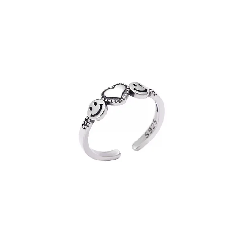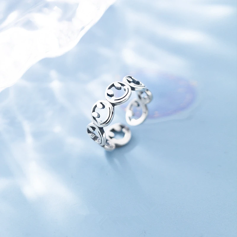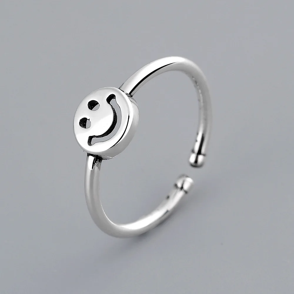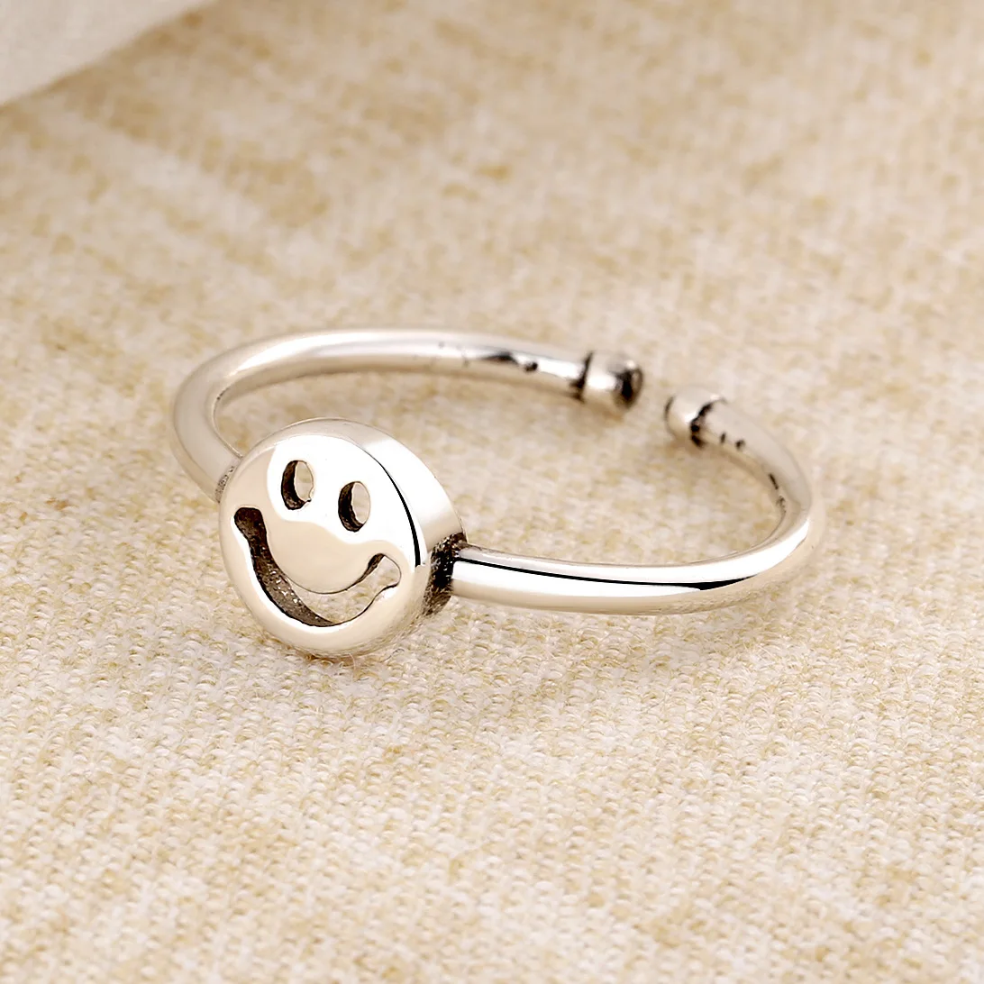 Круглые винтажные солнечные очки с улыбающимся лицом Открытое кольцо для женщин, цвет: старое серебро простой с милыми геометрическими Happy улыбающиеся лица Регулируемые кольца A915