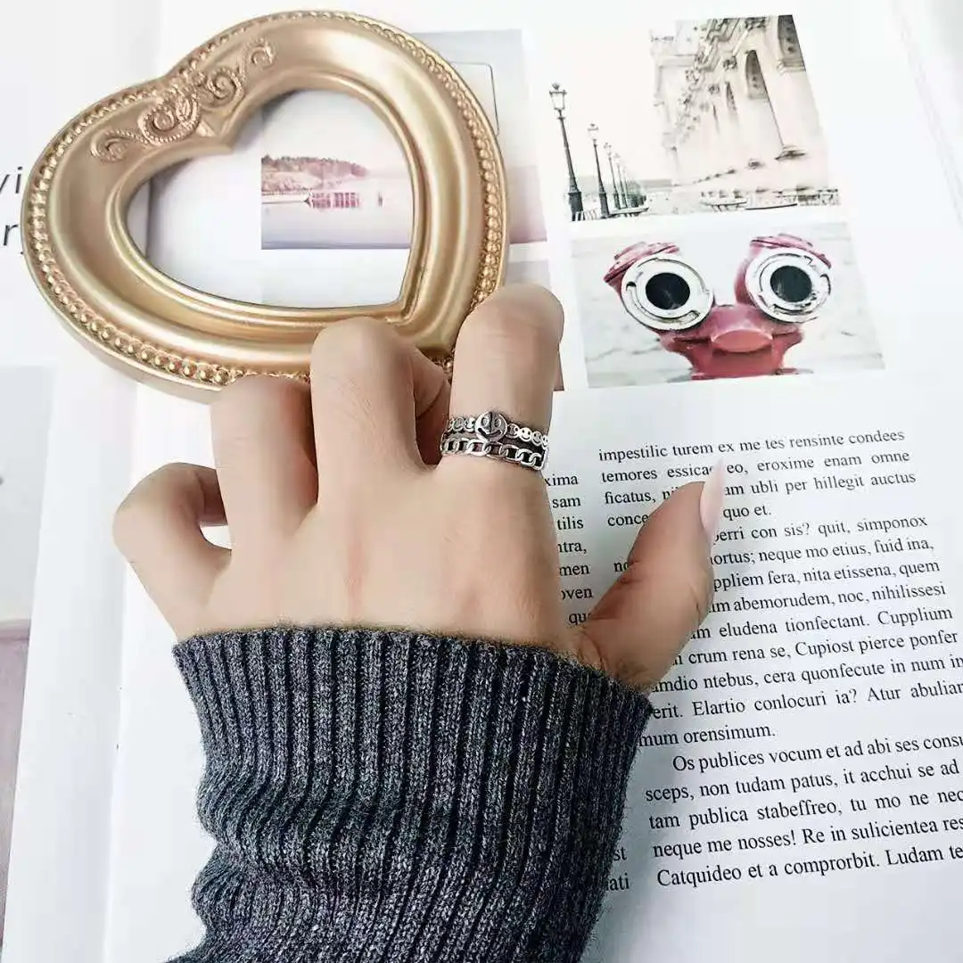 Женское кольцо в стиле ретро, регулируемое кольцо в форме сердца