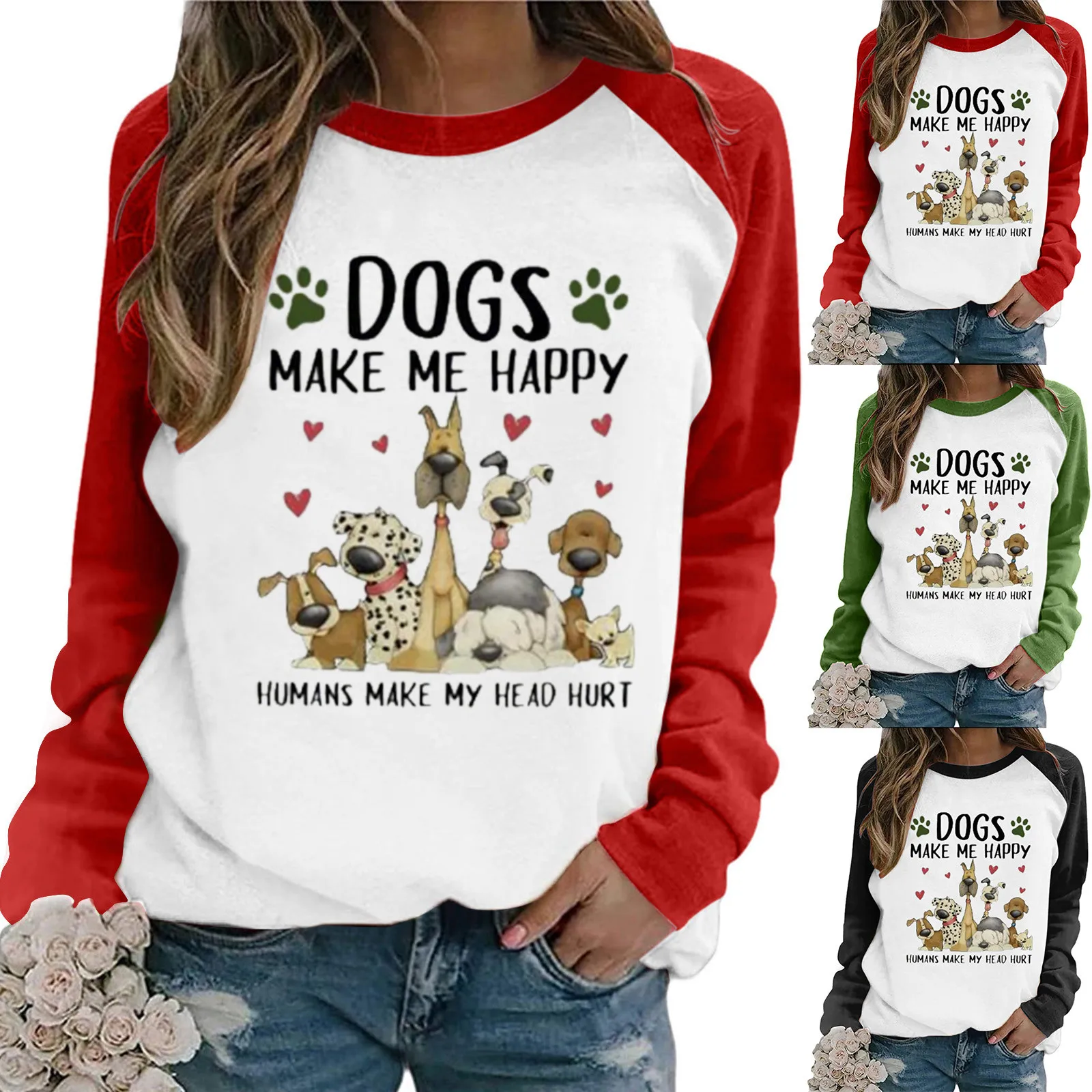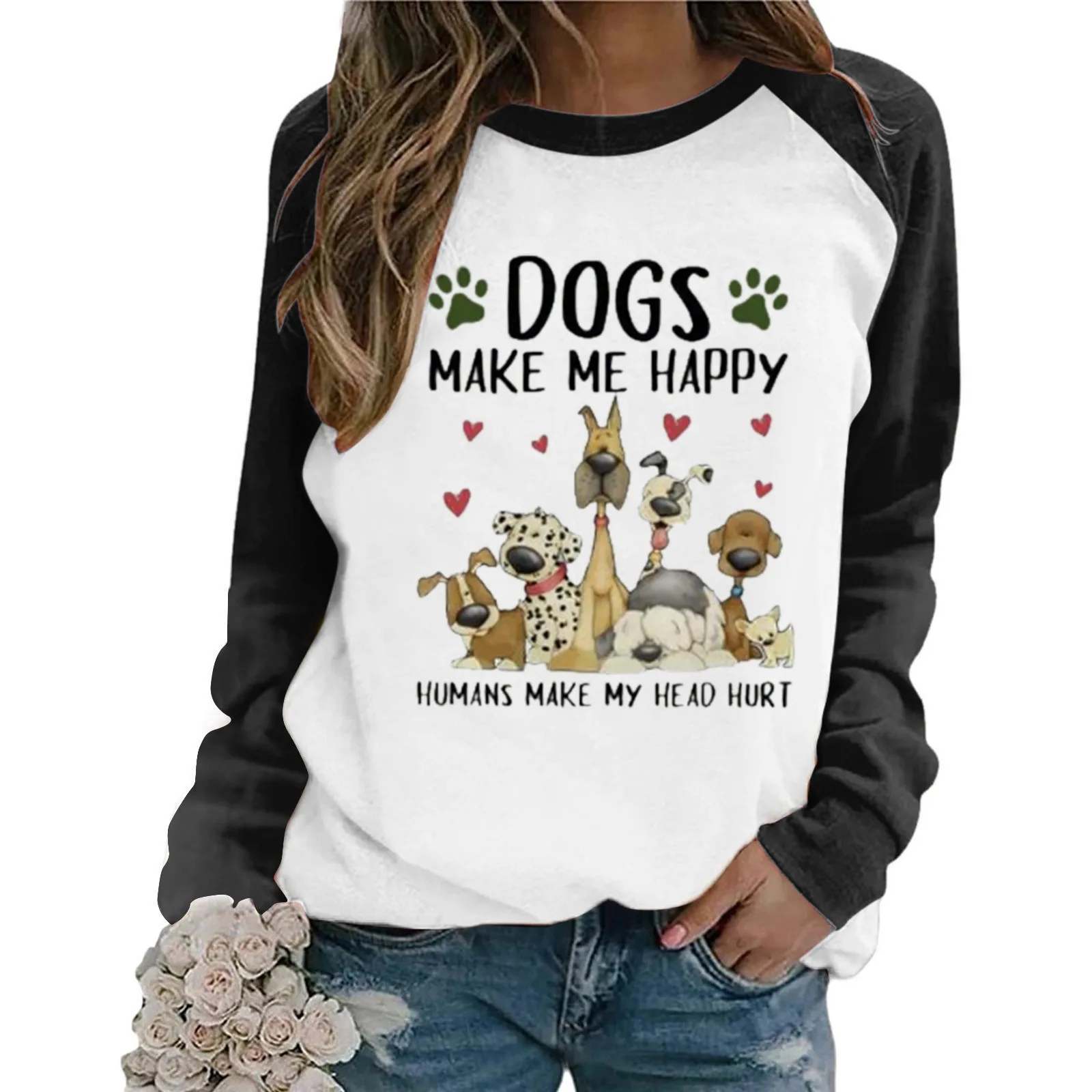 Женская толстовка с капюшоном с героями мультфильма Щенячий Make Me Happy свитшот с принтом Harajuku Повседневный пуловер с круглым вырезом и длинным рукавом, Осенние Блузы для девочек Bluzy пальто