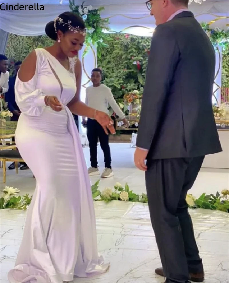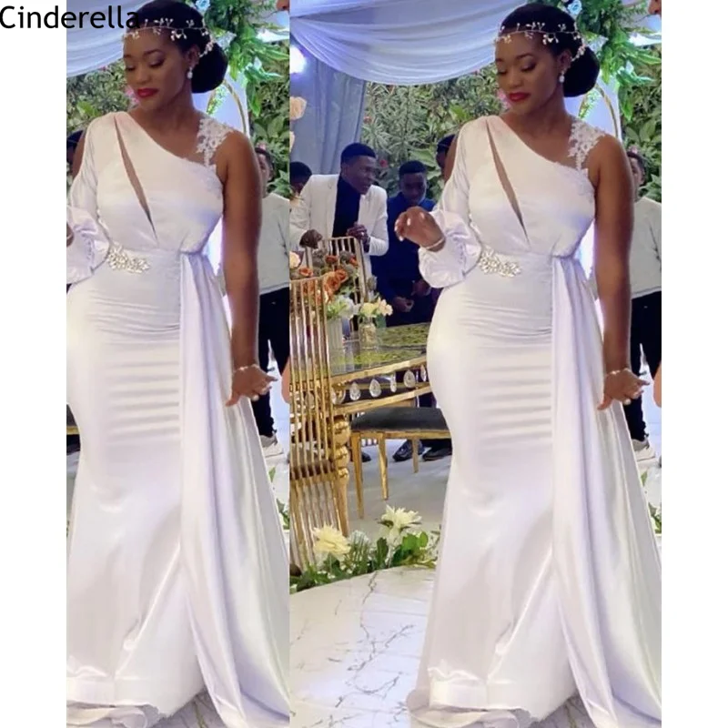 Свадебные платья с одним открытым плечом, высококачественные атласные кружевные свадебные платья с аппликацией и кристаллами, с молнией на спине, vestido de noiva