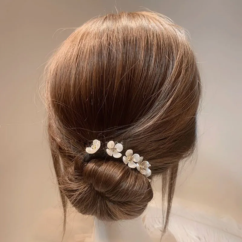 Заколка для волос с натуральным цветком и жемчугом, простая заколка...