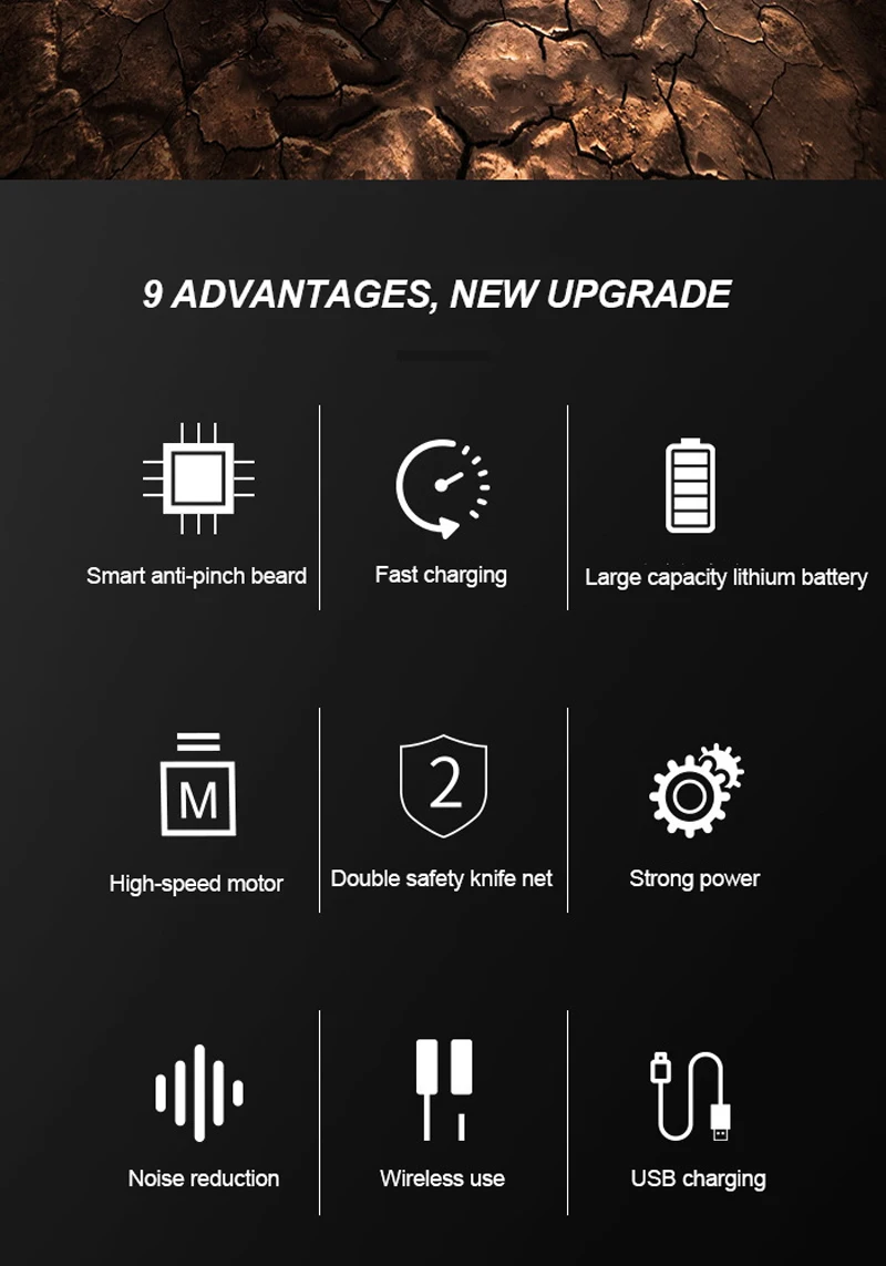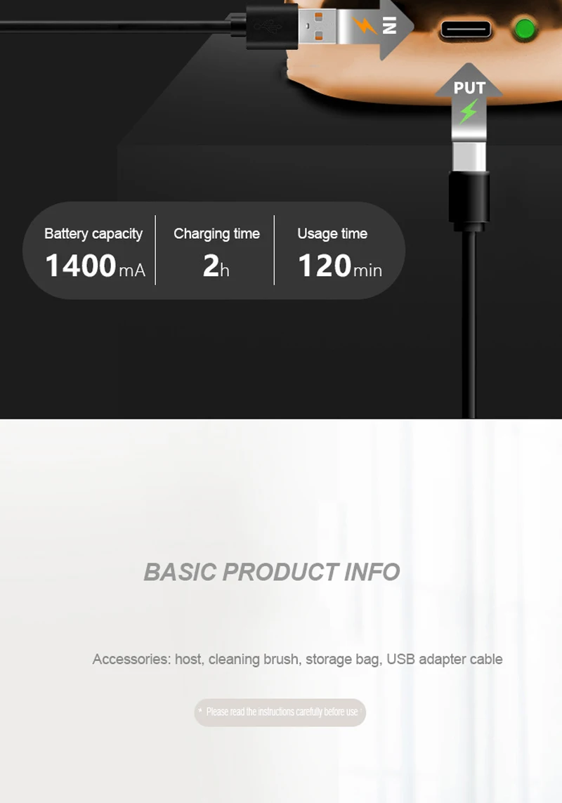 Инструкции:Спасибо за покупку нашего товара!Этот продукт является перезаряжаемой бритвой. Обычная Чистка с чистящей щеткой в порядке. Этот продукт имеет две плавающие головки бритвы, индивидуально рефлекторная система действий всегда может приблизиться к контуру лица, чтобы эффективно брить волосы любой длины и в любых растущих направлениях. Разумный Дизайн и сотрудничество двух лезвий принесет лучший эффект бритья.